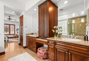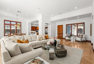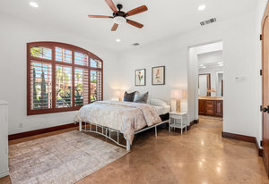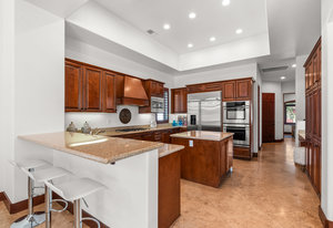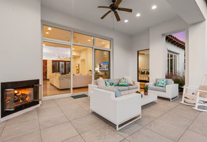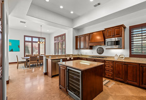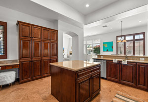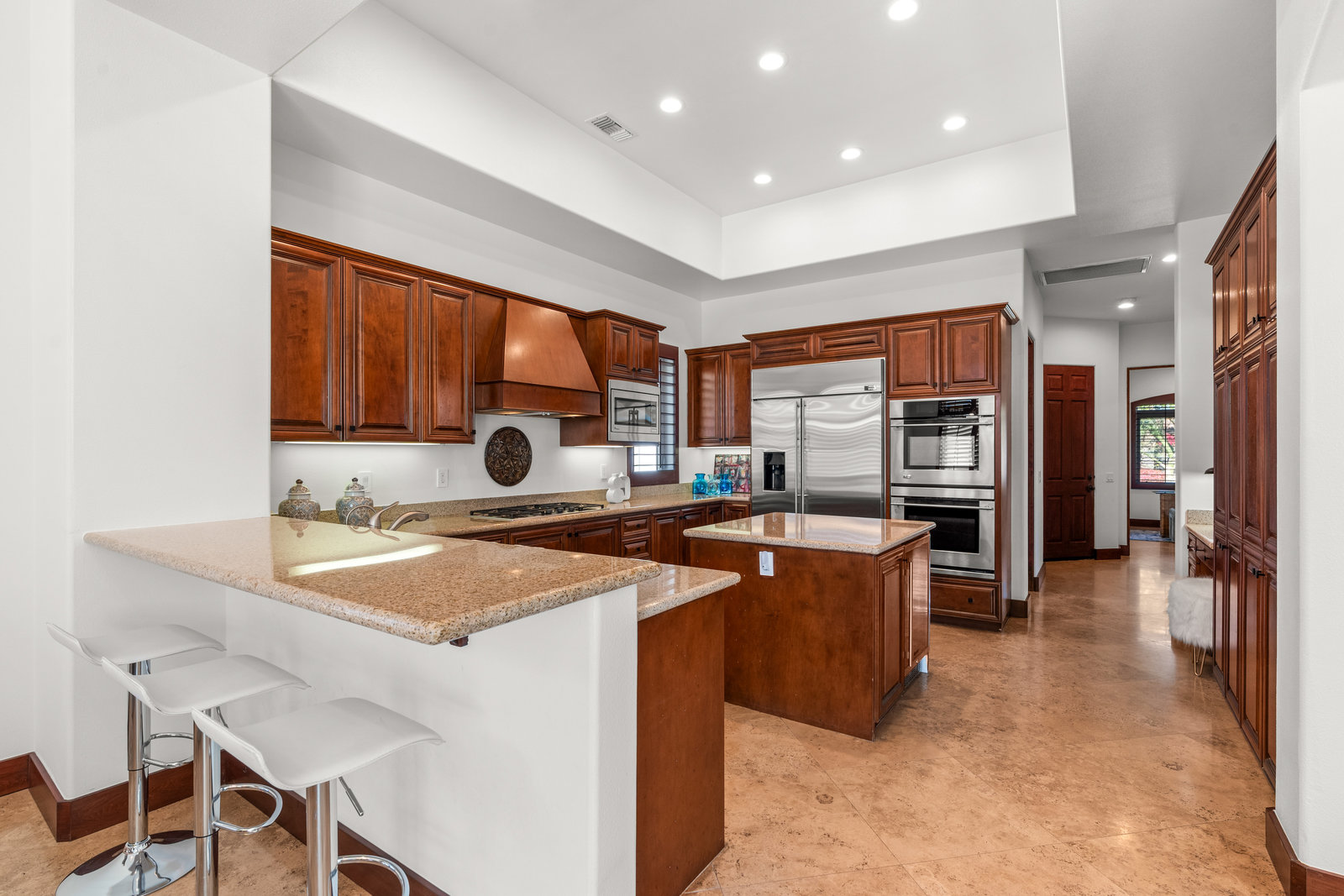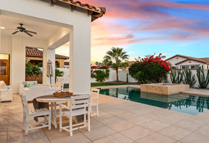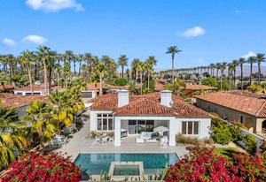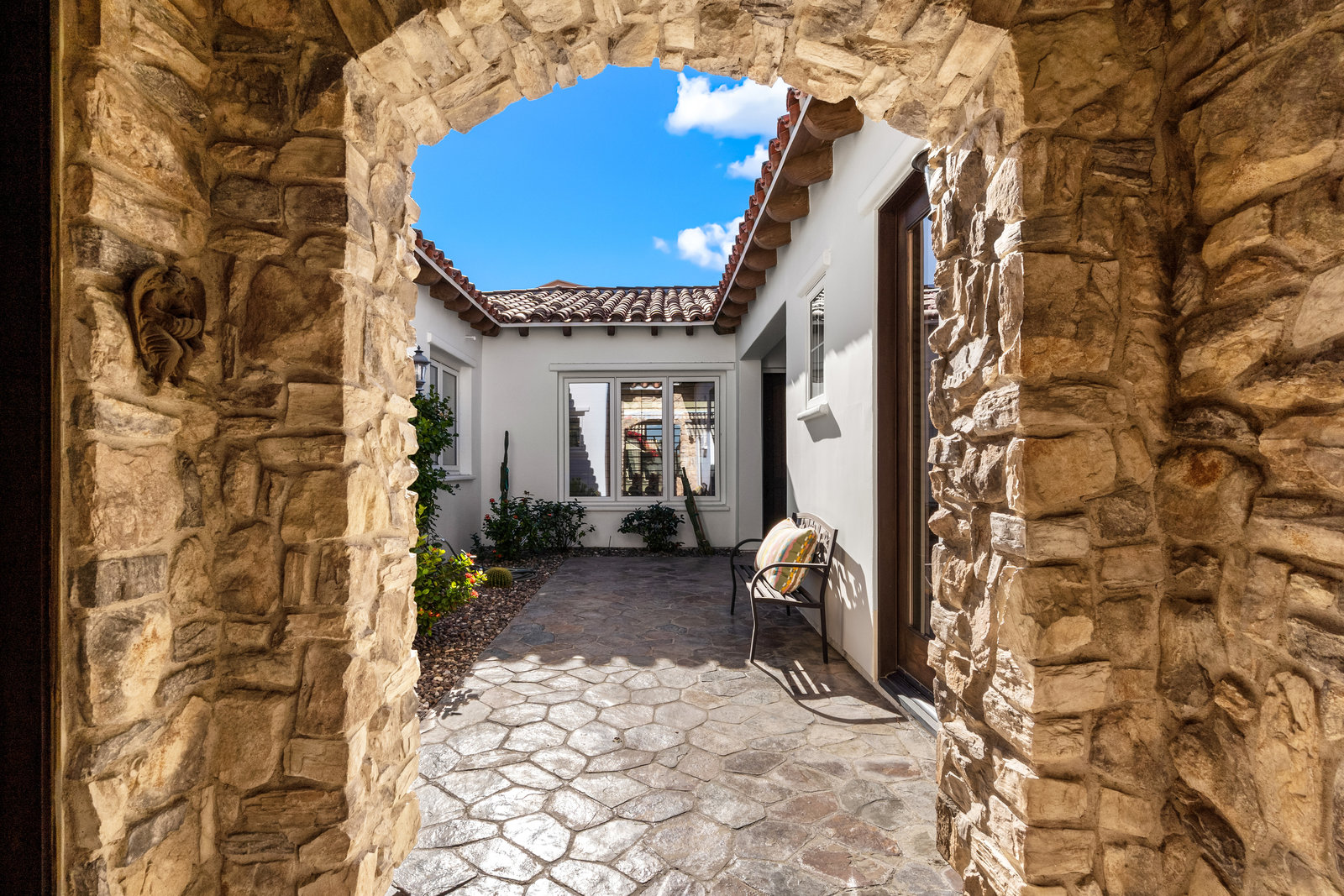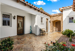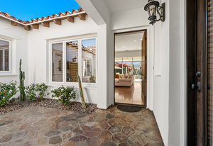 Stunning south-facing residence with 3 bedrooms, plus a den, set within the coveted Palms Golf Club, where timeless desert living meets mountain panoramas. Thoughtfully designed and meticulously maintained, this custom home captures the essence of resort living with a sparkling pool and spa, expansive decking, and a built-in BBQ perfect for gathering with friends and family. A courtyard entry welcomes guests with warmth and privacy, offering direct access to a detached casita. Through double doors, the interiors unfold with impressive scale, featuring vaulted ceilings, travertine flooring throughout, custom shutters, and an open-concept layout that balances refined comfort with an easy indoor-outdoor flow. The great room, anchored by a fireplace and framed by picture windows, connects seamlessly to the dining area and gourmet kitchen, where stainless steel appliances, a beverage cooler, upgraded cabinetry, and a generous breakfast bar create a space that is both functional and inviting, perfect for everyday living or entertaining with ease. The primary suite is a serene sanctuary, with spa-inspired bath features, including dual vanities, a soaking tub, and walk-in shower, enhancing the home’s retreat-like atmosphere. The Palms Golf Course, designed by Master’s Champion Fred Couples and located within the community, is a place where golf’s traditions are cherished, and the lifestyle is lived daily. In addition to world-class golf, this home is ideally positioned within minutes of premier dining, boutique shopping, renowned tennis and pickleball venues, and the Coachella Valley’s celebrated festivals, offering effortless access to the very best of desert living.