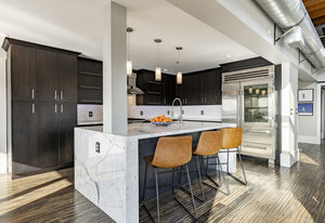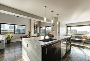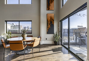 Experience sophisticated living atop the city with breathtaking views of the Wasatch Mountains and the urban landscape in this luxurious loft located in the heart of downtown Salt Lake City. This spacious end unit features two bedrooms and three bathrooms, highlighted by a stunning array of oversized windows that frame picturesque sky and mountain vistas. The main level boasts a well-appointed bedroom with an ensuite bathroom, complemented by an entertainer's kitchen equipped with high-end appliances and a generous Carrera marble island. Elegant light fixtures and soaring ceiling heights enhance the open-concept design of this home, creating a welcoming atmosphere for intimate conversations and comfortable living. The open dining area seamlessly integrates with the living space. Ascend to the upper level, which offers a cozy TV lounge and a dedicated floor-to-ceiling window nook ideal for meditation, yoga, or a home office, all while enjoying expansive views. The primary suite provides a tranquil retreat. Balconies on each floor invite you to take in the stunning western views of the Oquirrh Mountains and enjoy fresh air. The unit also comes with an indoor parking space and exceptionally large storage unit just two floors away. Your social calendar will be vibrant, with a wealth of cultural events and activities just steps away. Attend jazz games and the upcoming hockey season at the Delta Center, experience Ballet West at the historic Capitol Theater, enjoy symphonic performances at the architecturally stunning Abravanel Hall, or catch the latest theatrical productions at the Eccles Theater. Ten music venues hosting national popular rock, pop and alternative bands are all within a mile. For a taste of local flavors, take a leisurely walk or bike ride to the farmers market, where you can indulge in pastries, fresh local produce, artisan crafts, and exceptional cuisine at Salt Lake’s nationally renowned restaurant scene is all just a short walk away including: Copper Onion, White Horse, Eva's, Franklin Street, Valters, Fleming and so many more. Also conveniently located in the 328 Building on street level is Vosen's Bakery and Maxwell's Bar for your early morning coffee and late night pizza needs. Travel is a breeze, with Salt Lake International Airport only nine minutes away by car. Outdoor enthusiasts will appreciate the nearby City Creek Canyon, a favorite hiking spot with an extensive trail system for all levels. This condo, with its extraordinary views, provides all you could want in a sophisticated, urban, walkable lifestyle. Furnishings could be conveyed or negotiated with an acceptable offer.