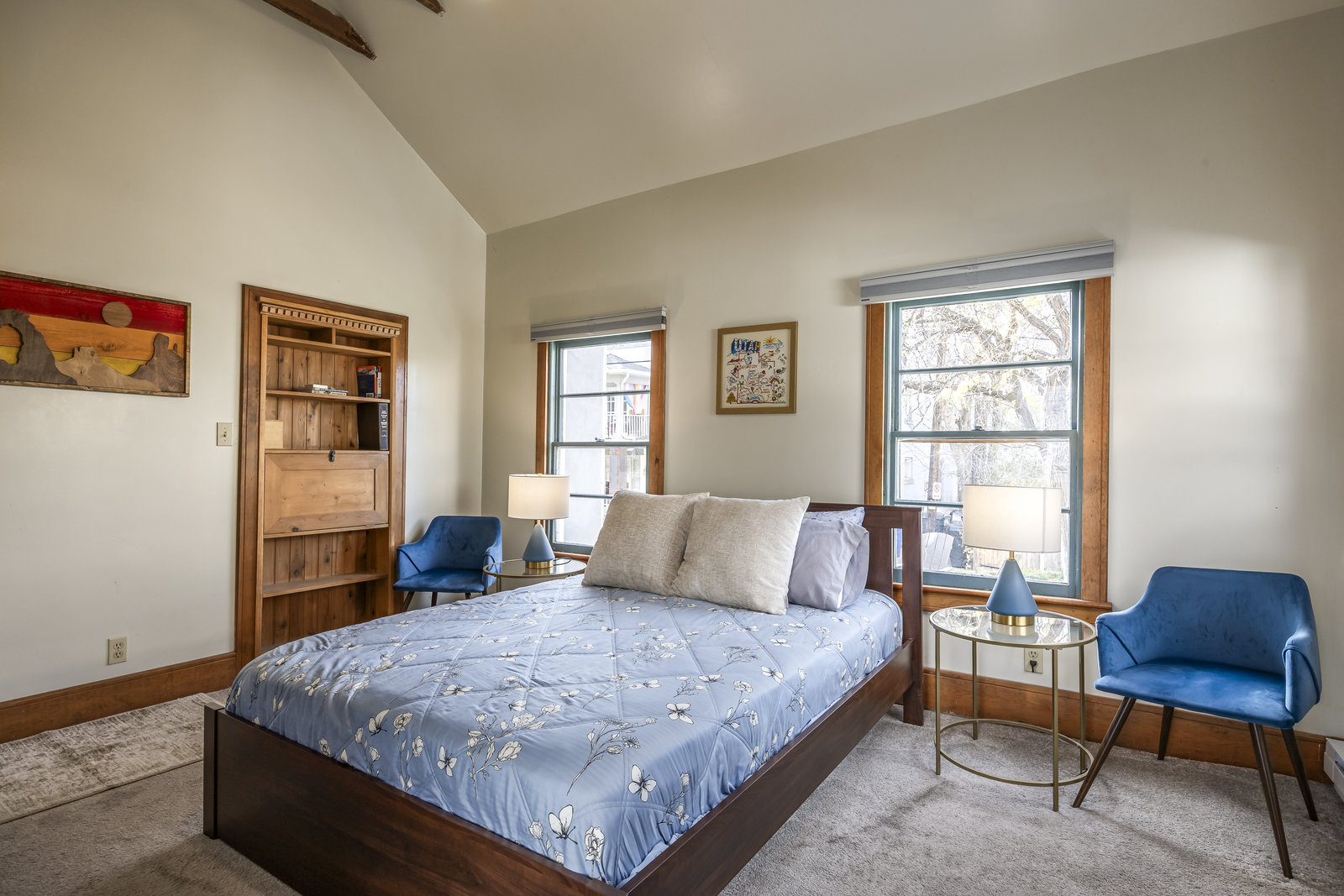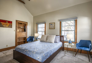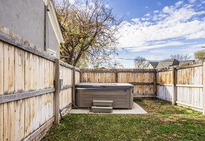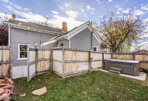 There are Multiple gathering areas in this home. A spacious dining room and two cozy dens that provide space to live, host, and unwind. Outside you'll find mature trees, a fenced in yard with a private hot tub, corner lawn gathering space, that all offers a peaceful escape in the center of the city.