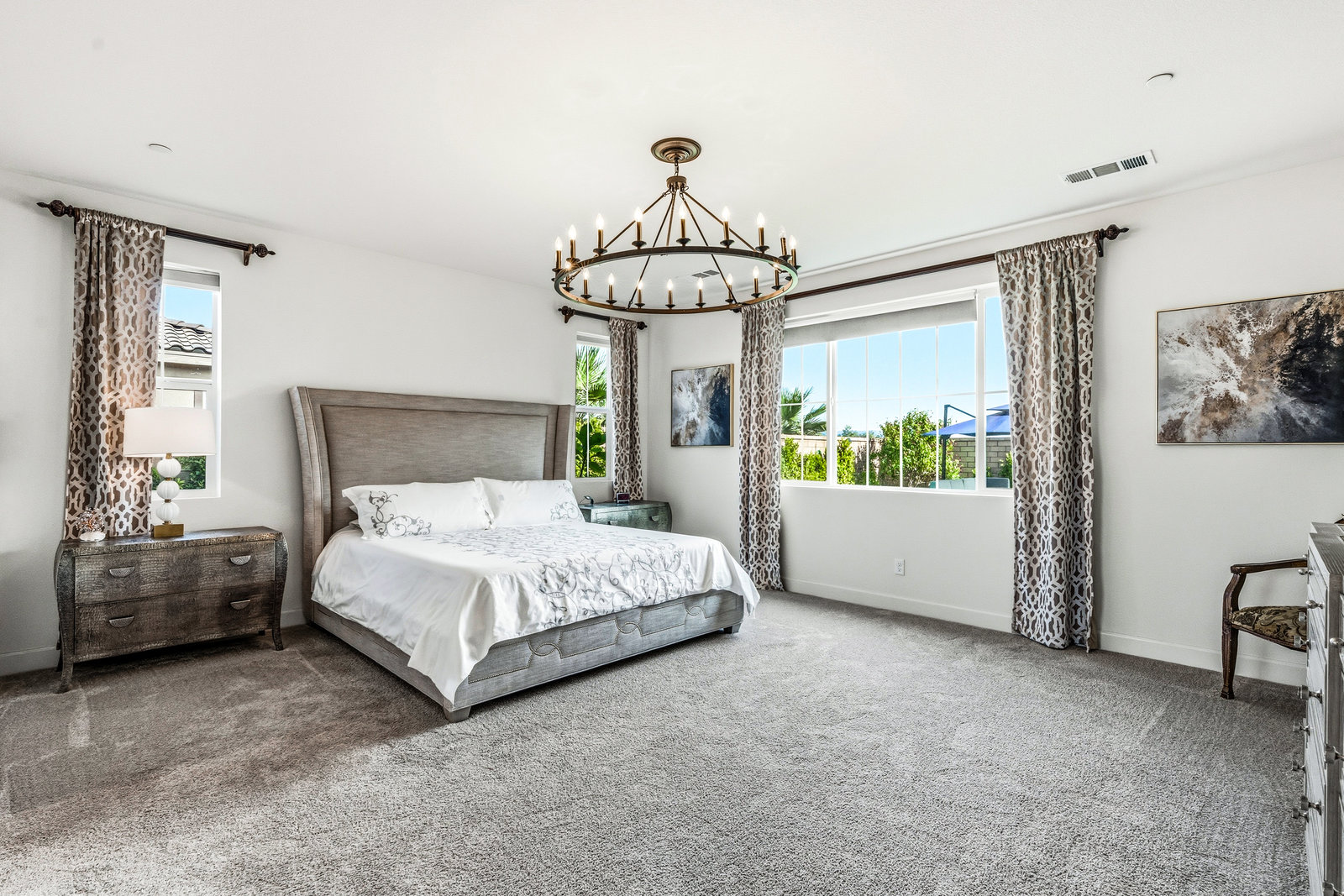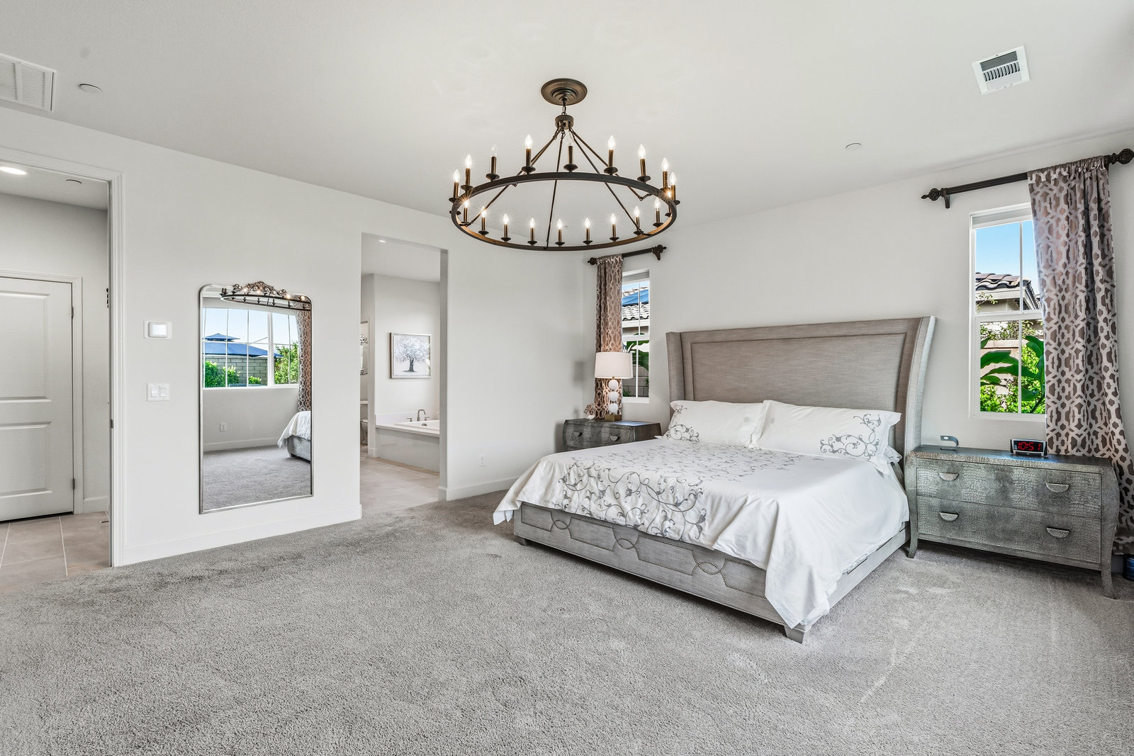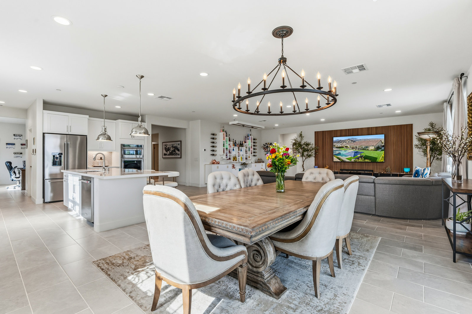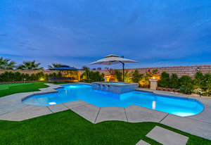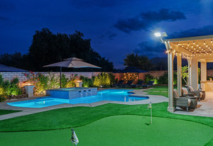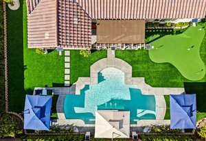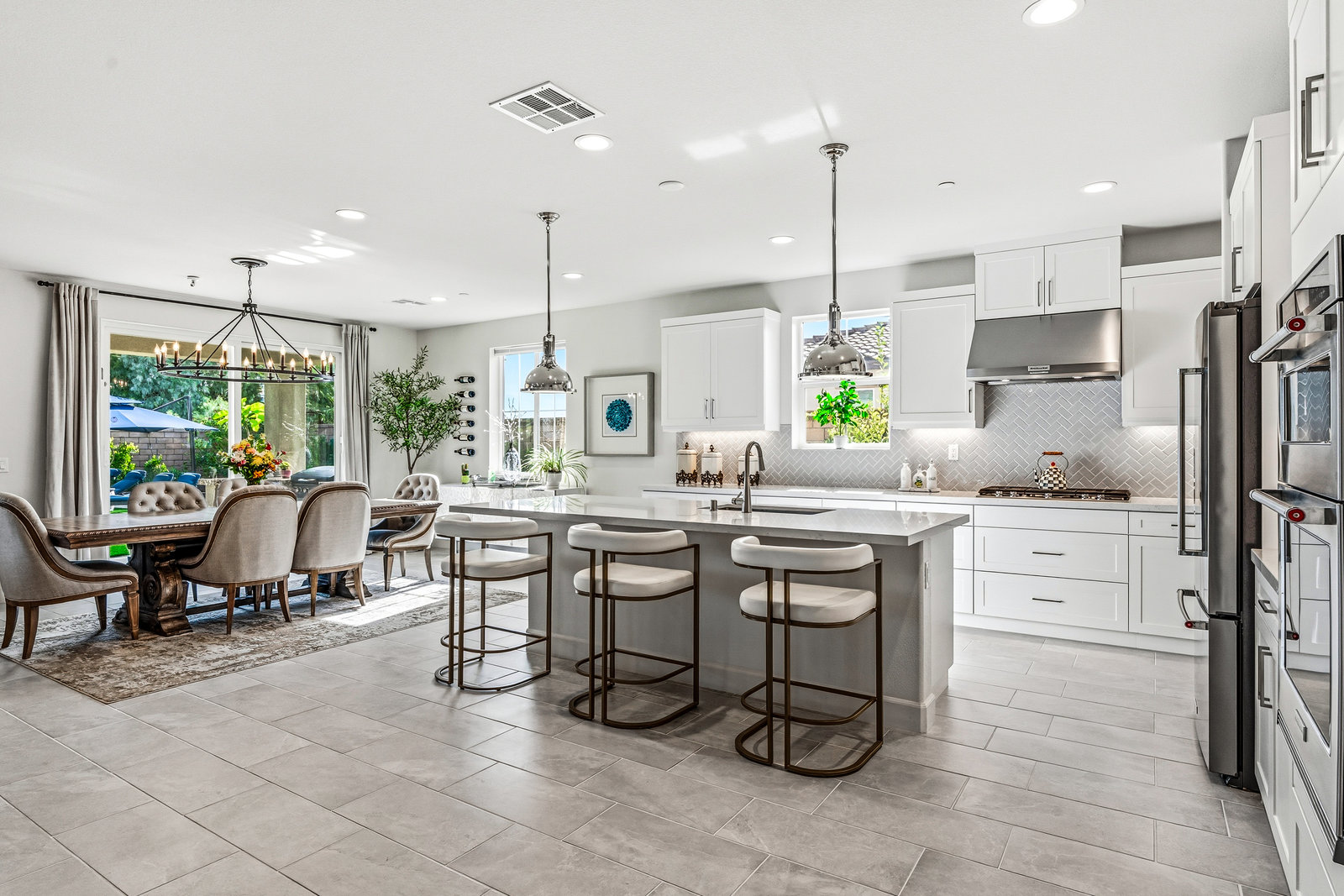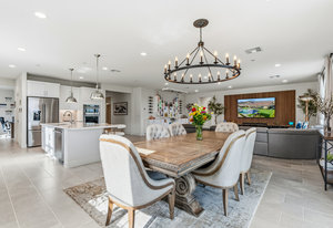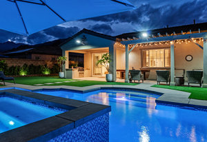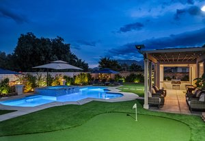 Welcome to 58228 Aragon Way, a light filled La Quinta retreat offering privacy, space, and thoughtful upgrades throughout. Located in the desirable Cantera at Coral Mountain community, this 3-bedroom plus den, 3-bath residence spans approximately. 3,006 sq. ft. on an expansive 11,761 sq. ft. lot with beautiful mountain views from the front, both side yards, and the backyard. Designed for bright year-round ambiance, the home enjoys excellent sun orientation and natural light. Each bedroom offers its own en-suite bath, while the flexible den can serve as an office or formal dining room and includes custom built-in cabinetry. Modern conveniences include owned solar (6.3 kW), three HVAC zones, tankless water heater, soft-close cabinetry, upgraded hardware, dimmer lighting, quartz center-island counters, and built-ins in both the office and family room. The backyard is an entertainer’s haven featuring a custom saltwater pool and oversized spa, adjustable LED pool and spa lighting, artificial turf, and a 4-hole putting green. The patio receives early shade in the summer, while the winter sun gently warms the south-facing windows, creating comfortable indoor living across the seasons. Indiana Laurel hedges line three perimeter walls, offering exceptional privacy while preserving open-sky views, with no construction planned behind the property. Additional features include a 3-car garage with built-in workbenches and shelving, four exterior cameras, fruit trees, solar landscape lighting, low maintenance landscaping, and low utilities per seller. A rare opportunity offering generous lot size, meaningful separation from neighbors, and a beautifully upgraded setting ideal for full-time living or a desert escape. Ideally located near renowned golf courses, top-tier tennis venues, and the vibrant dining and lifestyle destinations that define La Quinta living.