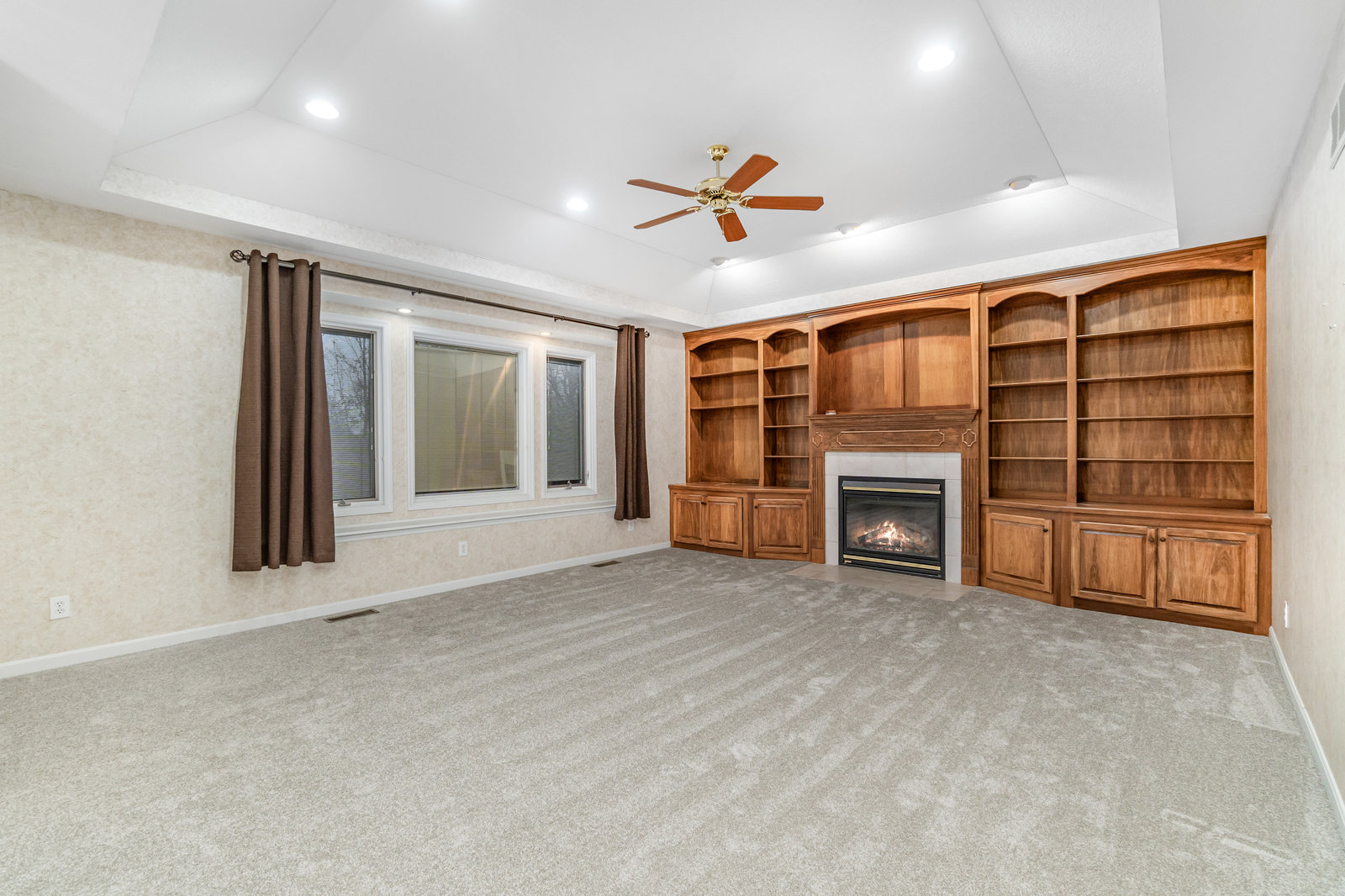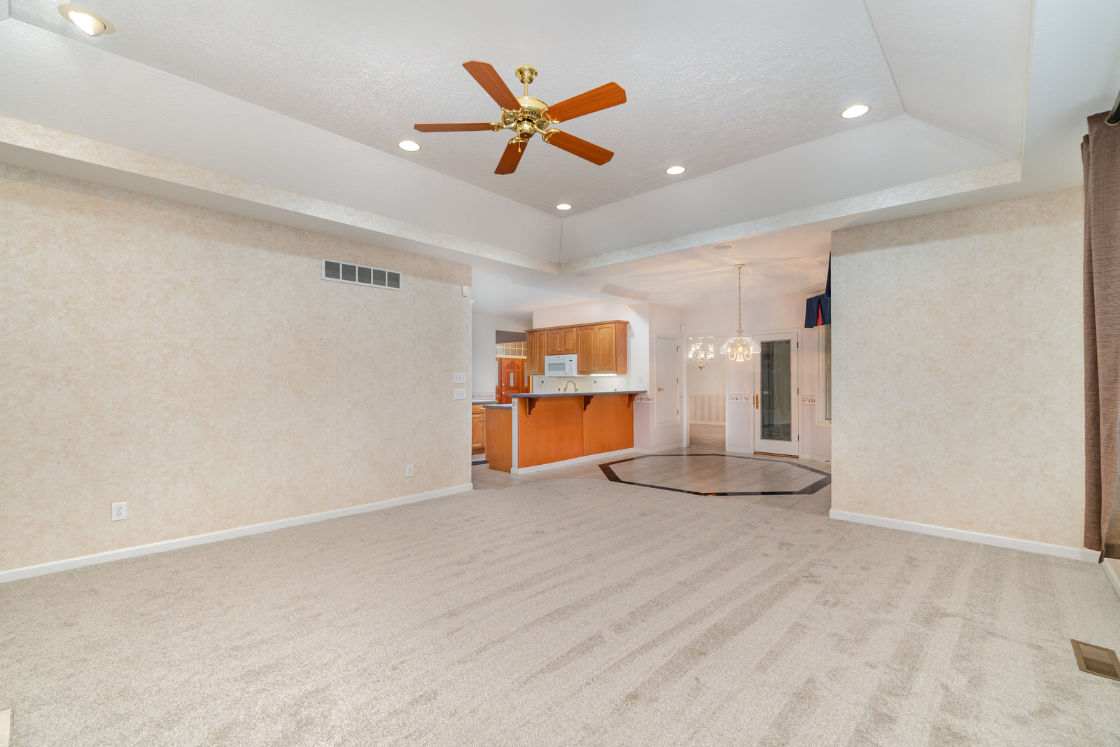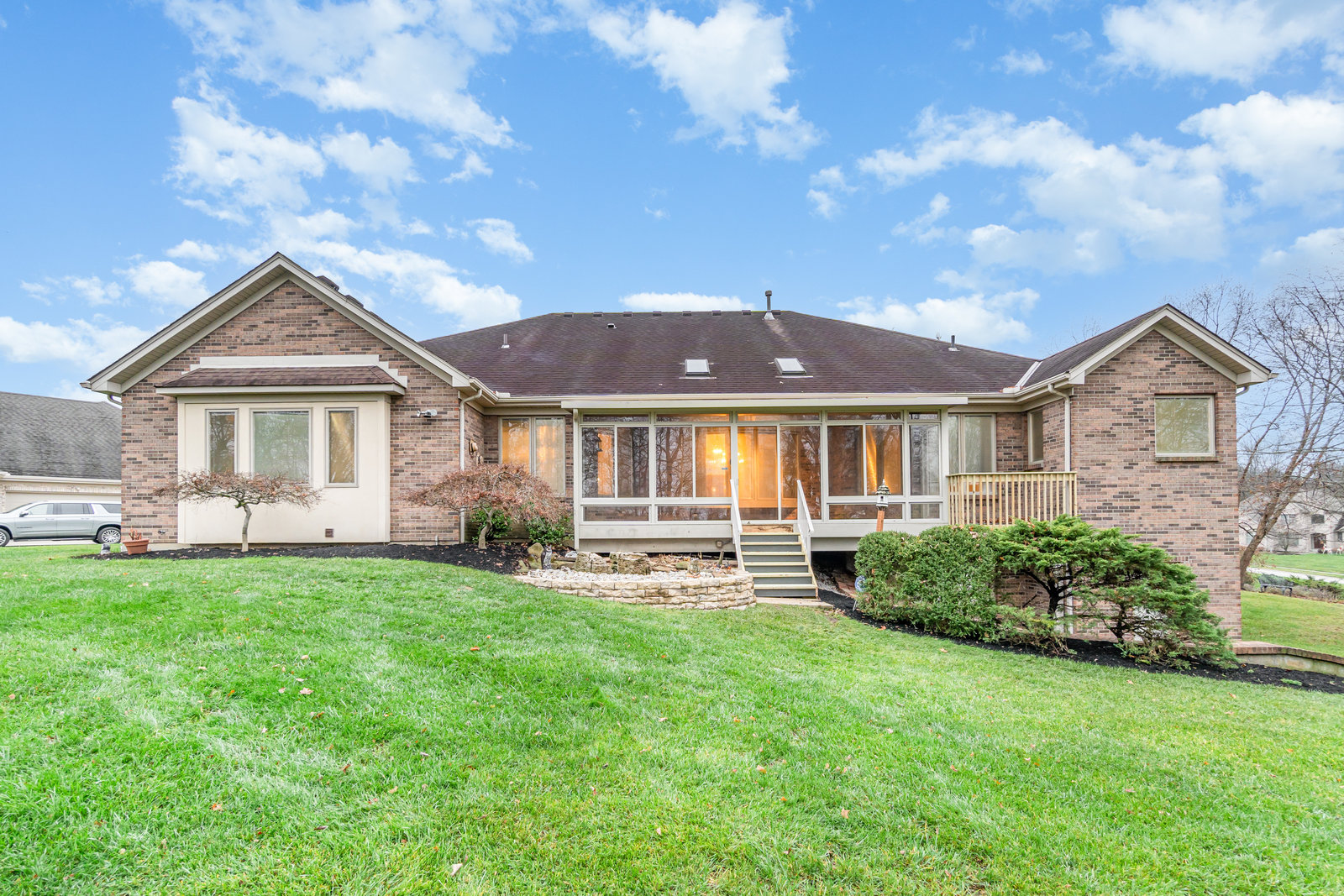Well maintained 3-bedroom, 3.5-bath ranch tucked away on a quiet cul-de-sac in Wellington Chase. This spacious home features an elegant dining room, inviting living room, and a bright kitchen with island, counter bar, and walkout to a fantastic three-seasons room overlooking the private rear yard. The open family room offers a gas fireplace and built-in bookcases. The large primary suite includes a walk-in closet and adjoining full bath with double vanities. Finished walkout lower level provides additional living and entertaining space. Enjoy a new deck, oversized 2-car garage, and peace of mind with newer HVAC and water heater. Conveniently located minutes to major highways, shopping, and amenities.
