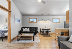 The 4-bedroom, 3.5-bath main residence has been completely remodeled inside and out, creating a true turnkey mountain retreat. Warm, modern finishes, cohesive design, and thoughtful upgrades throughout invite immediate enjoyment. Offered fully furnished, the home is ready for arrival—ideal for full-time living, a second home, or an investment-ready base.