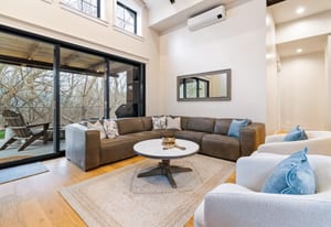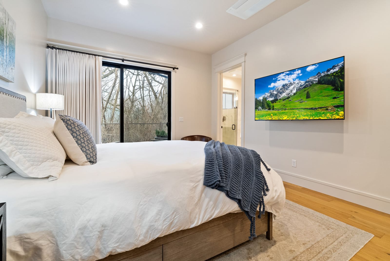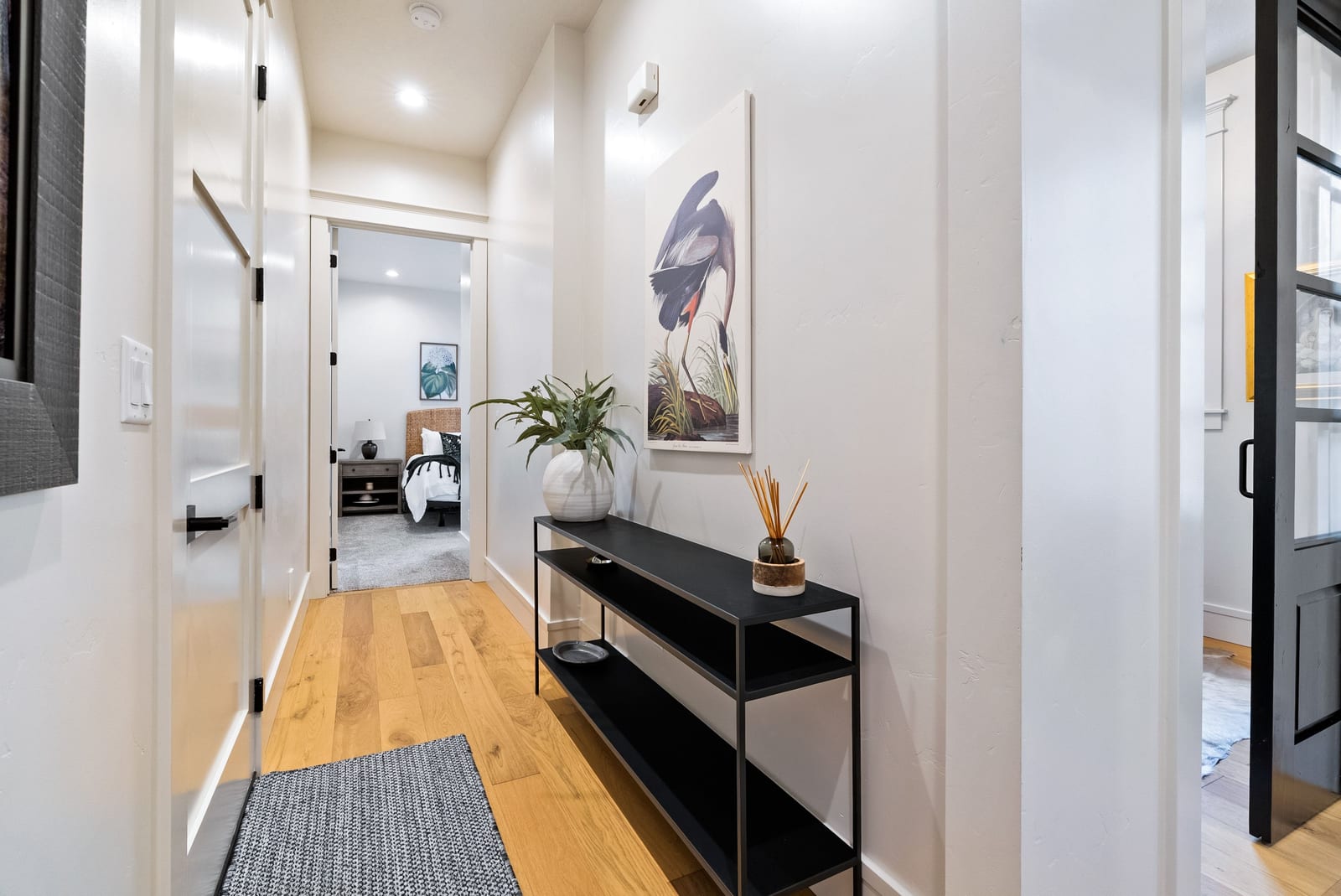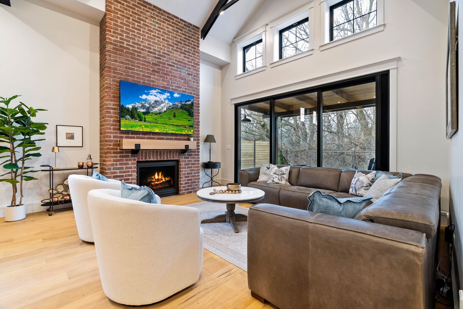 Modern, lock-and-leave living in Stillwater, Eagle’s premier riverfront community. Northwest-industrial design with vaulted ceilings, steel beams, radiant hydronic heated floors, and wide-plank engineered hardwood throughout. Expansive windows and a floor-to-ceiling brick fireplace anchor the open great room. 12’ triple sliding glass doors open to a covered patio and fully fenced yard backing to HOA-protected wetlands and open space for privacy and views Gourmet kitchen with quartz counters, 6-burner Bosch range, built-in microwave, and custom paneled Sub-Zero/Wolf refrigerator/freezer. Walk-in pantry with quartz workspace, outlets and storage. Office off entry with glass barn door. Split-bedroom layout (including a secondary en-suite), oversized laundry, abundant storage. Primary suite with quartz double vanity, soaking tub, tiled shower with glass surround, private water closet, and large walk-in closet. Energy efficient mini splits in every room. Premium 3-stage whole-home water treatment system and softener. Epoxy garage floor w/ ample storage. Resort amenities: pool, hot tub, sports courts, and garden boxes. With immediate access to the Boise River, Greenbelt, nearby trails, and downtown Eagle just minutes away, this location offers a rare balance of privacy, walkability, and connection to the outdoors. GARAGE door is 18' wide AND EXTRA DEEP WITH STORAGE!