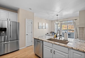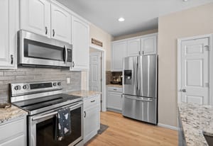 An attached 2-car garage provides convenience and extra space for storage, while the lock-and-leave lifestyle means no yardwork or landscaping upkeep.