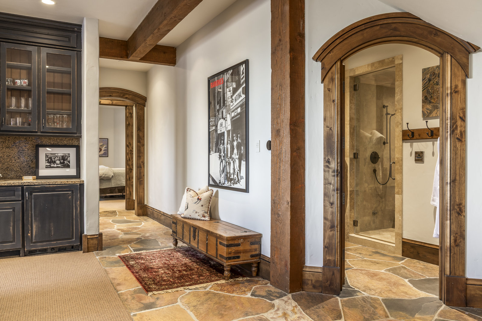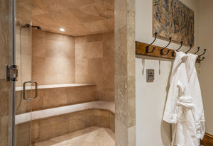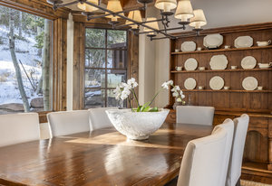 Experience ultimate convenience with a custom ski prep room just steps from the ski run, complete with a steam room to recharge for every adventure. After a thrilling day, unwind in the hot tub overlooking breathtaking mountain vistas.