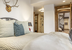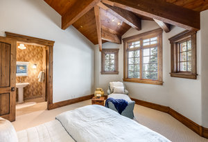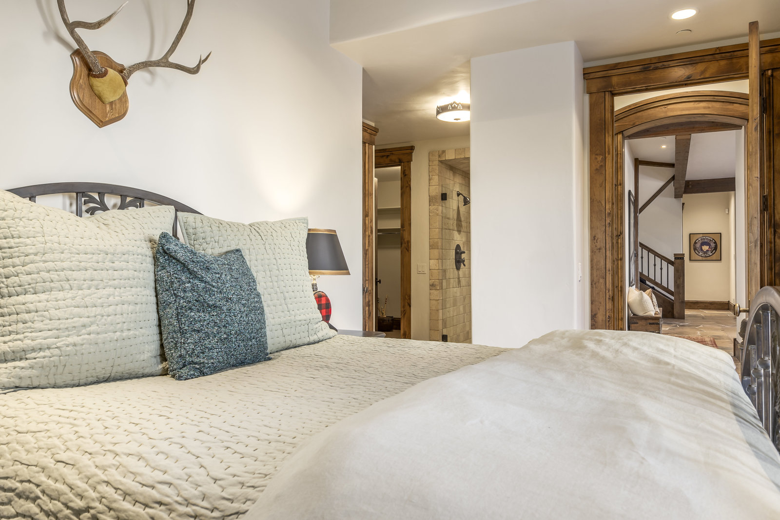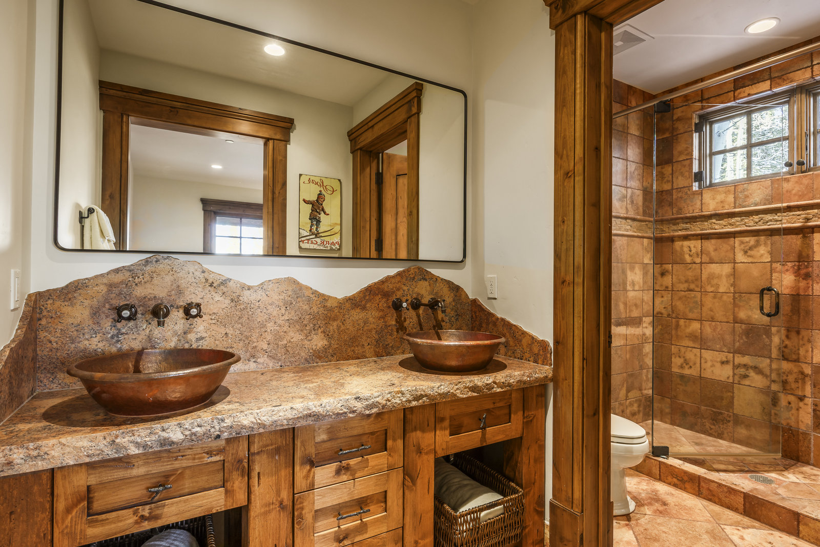 This sanctuary of mountain luxury features a tranquil master suite, a thoughtfully arranged second-level bedroom wing, and a convenient guest suite on the lower level for privacy. The inviting mountain aesthetic creates a space for unforgettable gatherings and cherished memories.