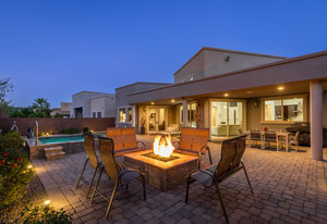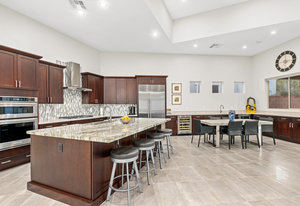 Welcome to this stunning single-story home in the gated Ironwood community, offering luxury living on an expansive 8,276 sq ft lot. With over $300,000 invested in builder upgrades, custom landscaping, and elevated outdoor amenities, this property delivers exceptional design and value. Soaring 14-foot ceilings create a bright, open atmosphere throughout. The gourmet kitchen features a Sub-Zero refrigerator, stainless steel appliances, a granite island, and sleek quartz countertops. A custom wet bar with two wine/beverage coolers provides an ideal space for entertaining. The spacious primary suite includes custom closets and French doors leading to the backyard. Outside, enjoy a private spa, gas fire...