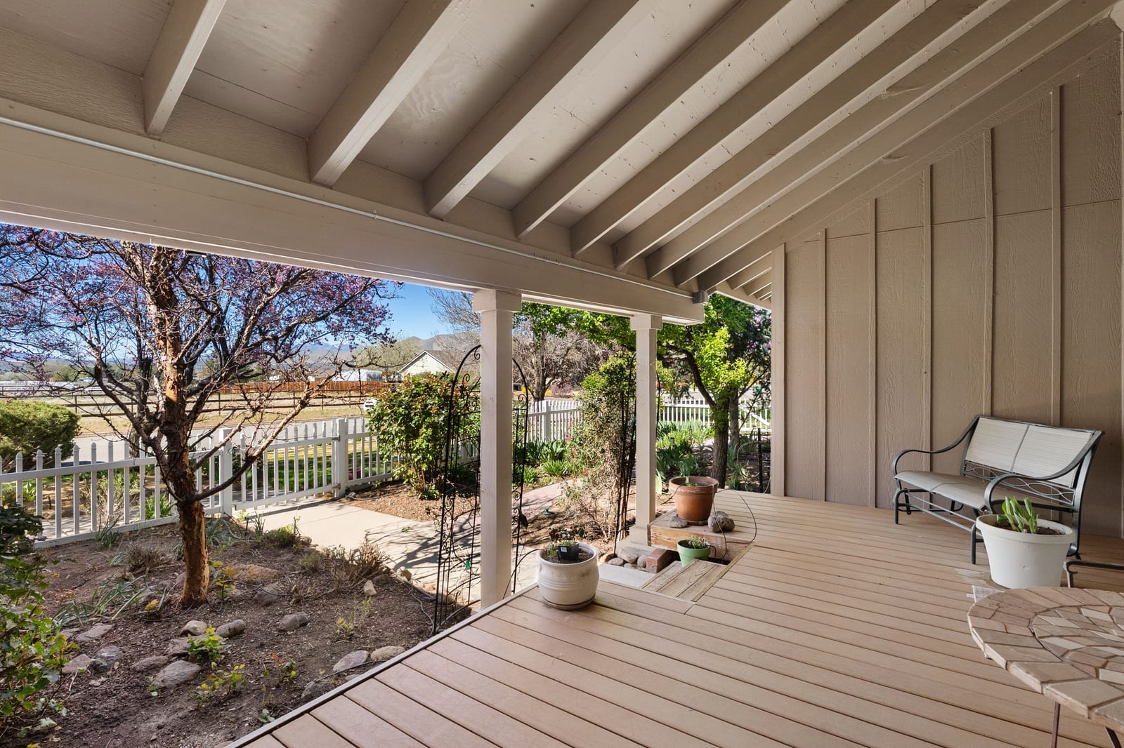 feels like a private retreat featuring a tranquil koi pond, mature pear and apple trees, and space to garden—perfect for those who appreciate outdoor living, fresh fruit from your own yard, and the