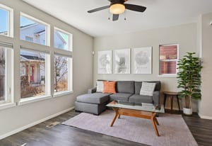 Additional features include central air conditioning, a tankless water heater, a whole house humidifier, an attached two car garage, and a private fenced yard that invites quiet mornings and relaxed weekends outdoors. Set within the sought after Midtown community with pocket parks, trails, and walkable favorites such as Bruz Beers and Early Bird, this location offers a connected Denver lifestyle.