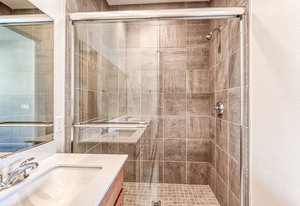 secondary bedrooms & a convenient laundry closet. The private 1st floor bedroom with en-suite bath is