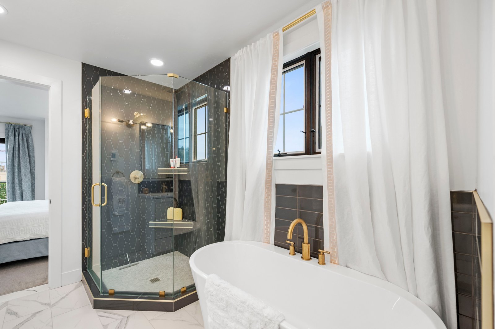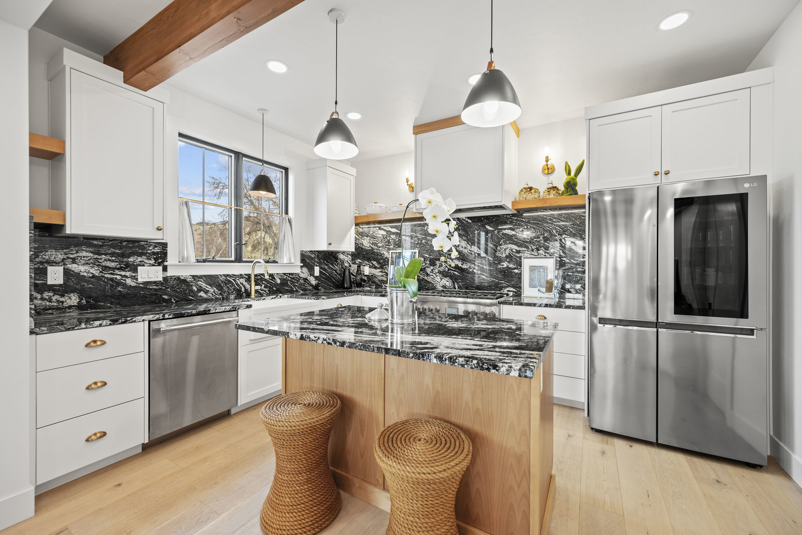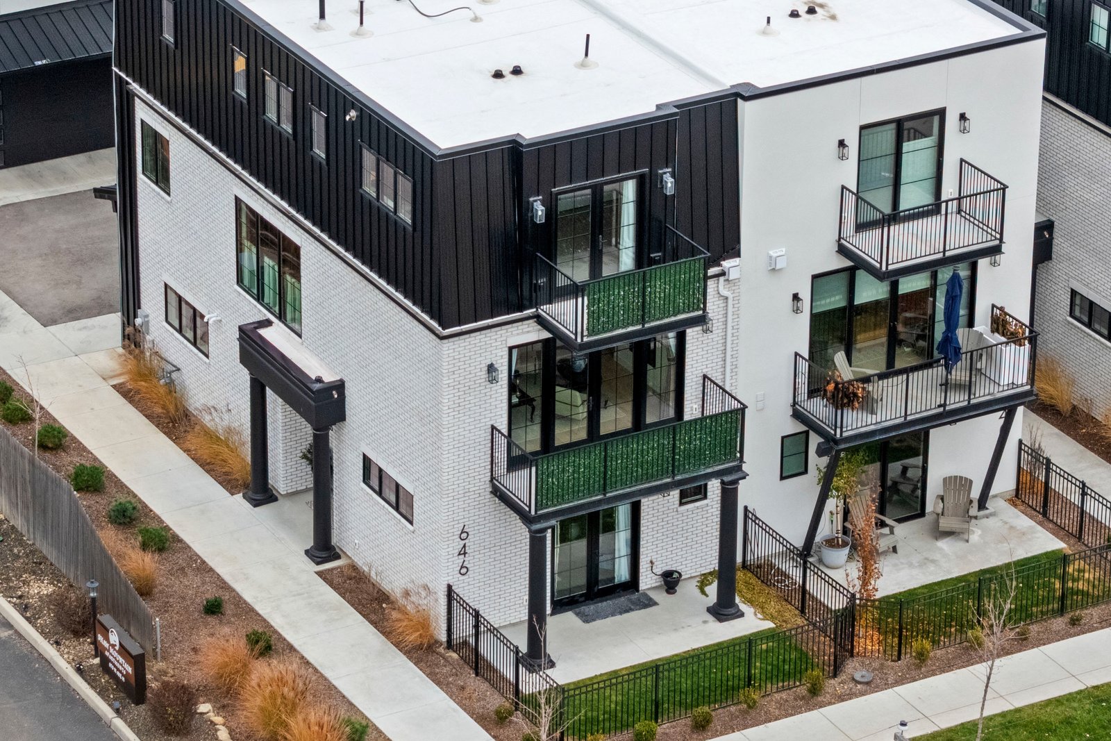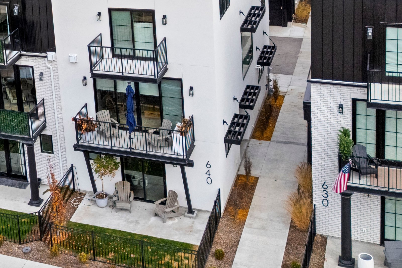 European-Inspired Luxury Living with views of Foothills East Reserve. Six Four Six is the premier residence in the community, curated with bespoke European finishes and perfectly positioned to overlook Boise’s Military Reserve. Sun-filled living spaces showcase wide-plank raw oak floors, natural wood beams, a gas fireplace flanked by custom cabinetry and European vintage sconces. French doors lead to the balcony overlooking the reserve and picture perfect sunsets. The epicurean kitchen features a 6-burner Thermador range with hood, black granite slab surfaces and backsplash, stainless appliances and a butler’s pantry with wine fridge, coffee bar, and elegant French café curtains framing foothills views. Upstairs, the primary suite indulges with heated marble floors, dual closets, a modern soaking tub, gold fixtures, and a sculptural orb pendant in the private water closet. A second ensuite bedroom offers its own Romeo balcony and luxurious finishes. The garden suite features Chihuly inspired lighting, an ensuite bath and laundry for guests. French doors adorned with custom European draperies open to the quaint patio for ultimate relaxation. This is a one of a kind, turn key European Luxury Townhome and includes HOA-maintained landscaping and a community outdoor dining pavilion. Steps from foothills trails, St Lukes, Downtown Boise, BSU and the Greenbelt.