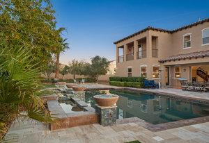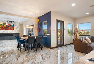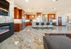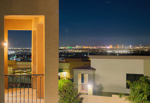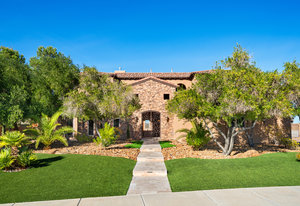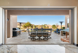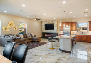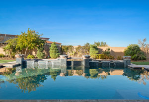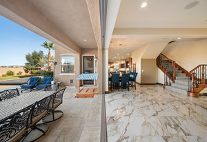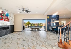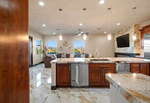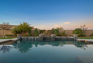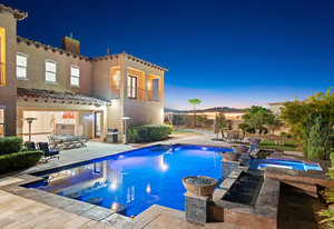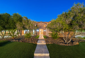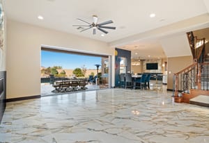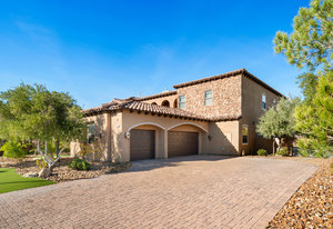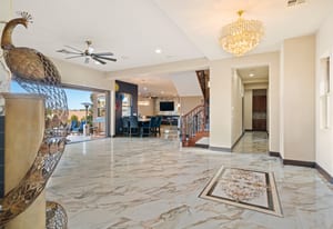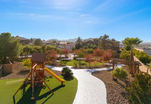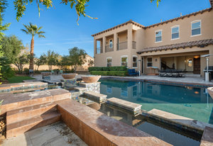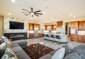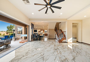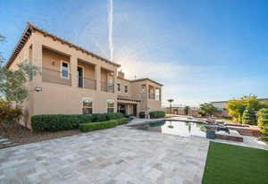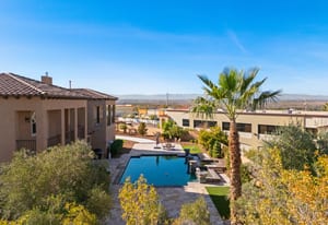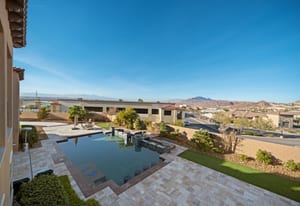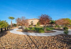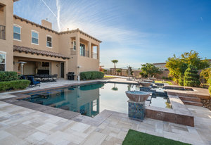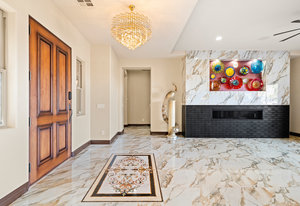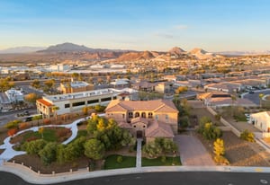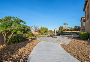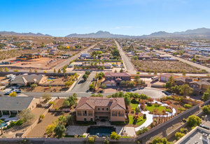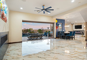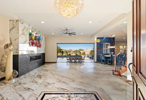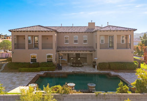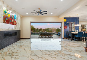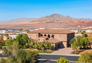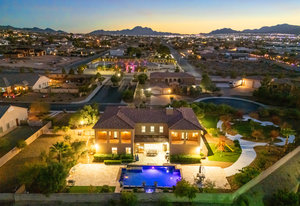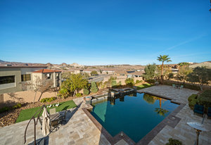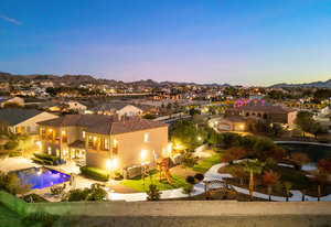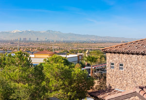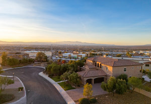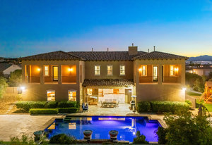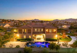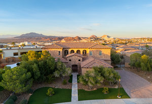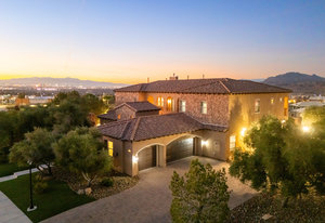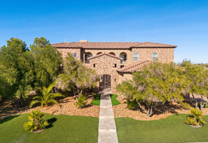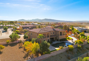 Beautifully reimagined inside the gated community of Lake Mead Estates, this home blends warmth, comfort, and modern luxury on nearly an acre. Fresh interior and exterior paint, new porcelain tile floors, new carpet, and custom media walls elevate every space. The kitchen features quartz countertops and a large quartz island, opening to a newly added multi-panel doorway that creates seamless indoor–outdoor living. The resort-style yard offers a refinished pool, new travertine, real grass, and mountain/Strip views. Every bedroom includes its own bathroom and walk-in closet, providing exceptional comfort and privacy. Complete with six bedrooms, eight baths, a wine cellar, gym, and inviting ...