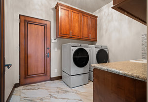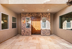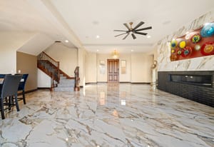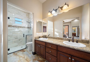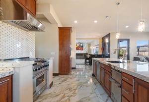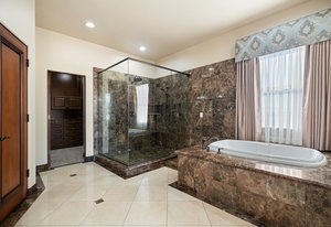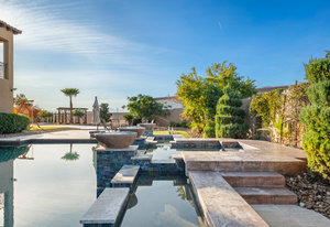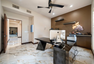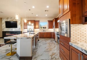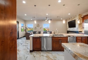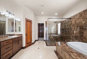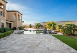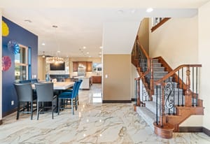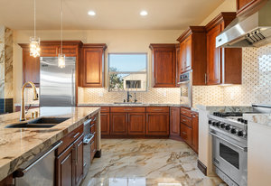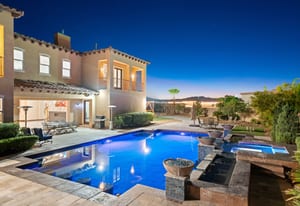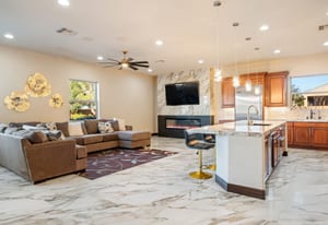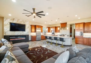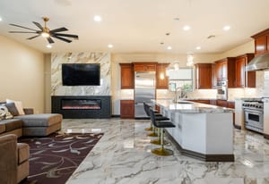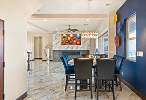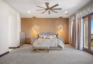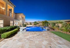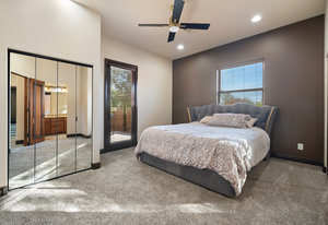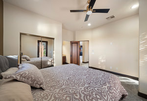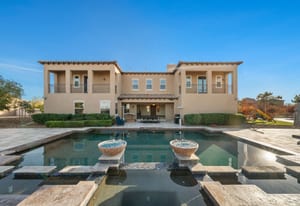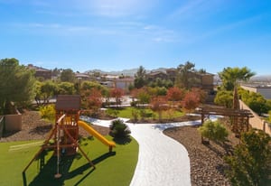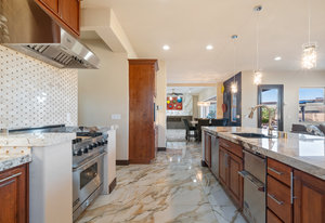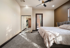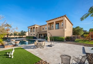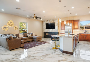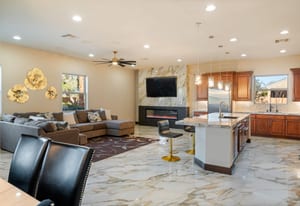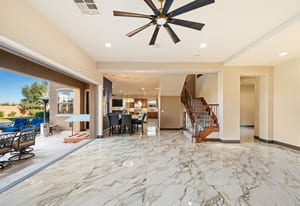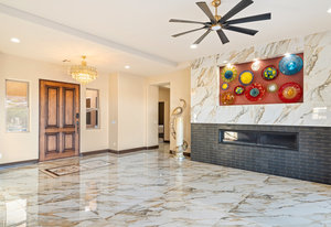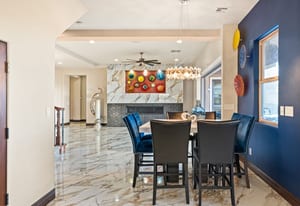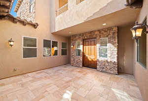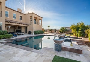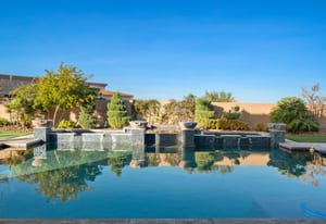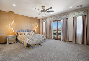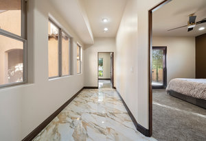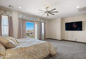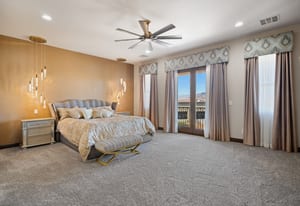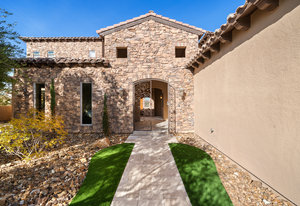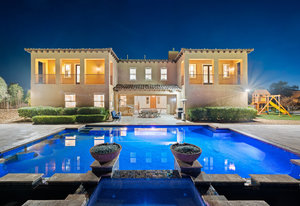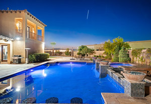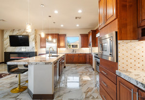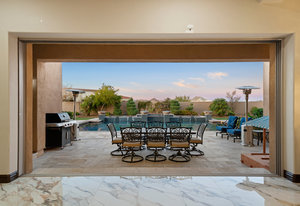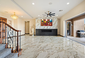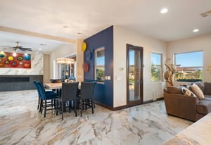 Beautifully reimagined inside the gated community of Lake Mead Estates, this home blends warmth, comfort, and modern luxury on nearly an acre. Fresh interior and exterior paint, new porcelain tile floors, new carpet, and custom media walls elevate every space. The kitchen features quartz countertops and a large quartz island, opening to a newly added multi-panel doorway that creates seamless indoor–outdoor living. The resort-style yard offers a refinished pool, new travertine, real grass, and mountain/Strip views. Every bedroom includes its own bathroom and walk-in closet, providing exceptional comfort and privacy. Complete with six bedrooms, eight baths, a wine cellar, gym, and inviting ...