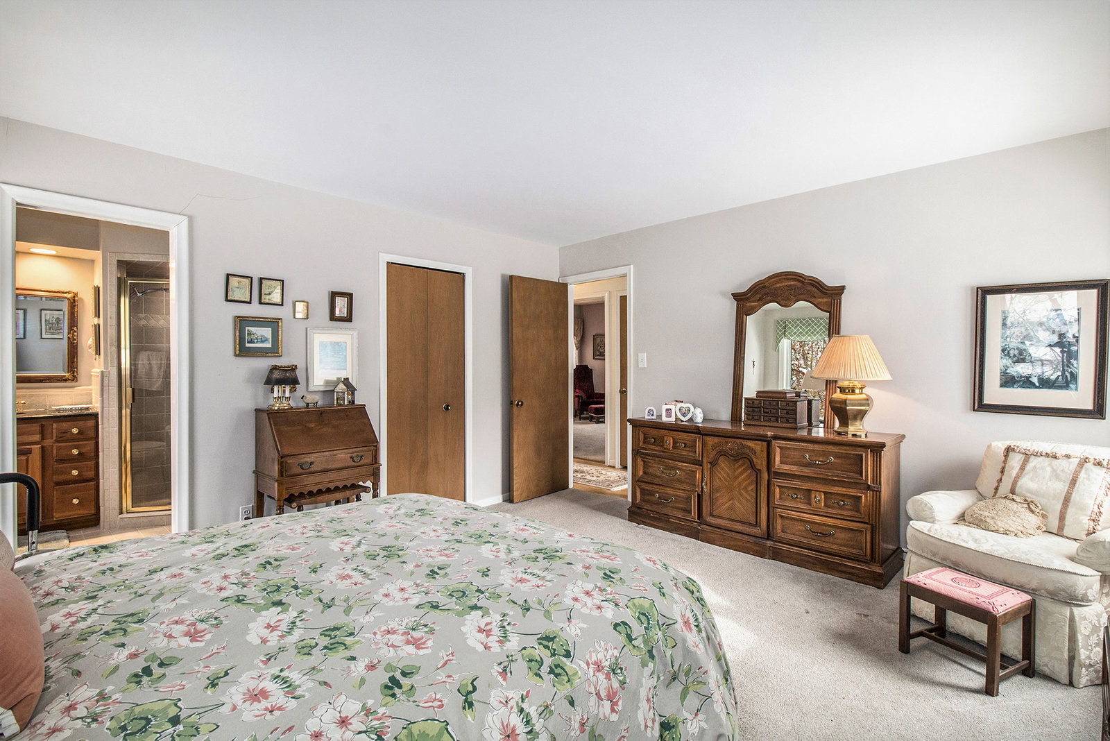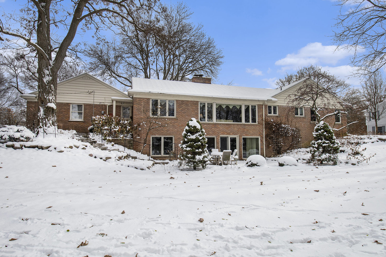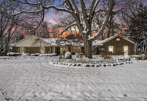 Nestled in one of Bloomfield Hills’ most beautiful subdivisions—known for its winding roads, generous lot sizes, and serene atmosphere—this brick ranch offers exceptional curb appeal in the highly sought-after Birmingham School District. The circular driveway, lush landscaping, and side-entry two-car garage create a welcoming first impression, further enhanced by a charming covered front porch perfect for enjoying warm-weather days. Inside, the expansive foyer sets the tone for the home’s spacious layout. To the right, the kitchen overlooks the front grounds and serves as a true gathering space for both everyday meals and entertaining. It features abundant counter space, an island, double ovens, extensive cabinetry, and seamless access to the formal dining room. The dining room flows directly into the formal living room, where large windows frame stunning views of the private, tree-lined rear yard—an exceptional setting rarely found and ideal for those who appreciate natural beauty and privacy. The bedroom wing is thoughtfully situated to the left of the foyer, with the primary suite offering an updated en-suite bath with a stall shower and custom closet. Hardwood flooring runs throughout much of the home, adding warmth and continuity. The finished walkout lower level provides wonderful additional living and entertaining space, complete with a family room, fireplace, wet bar, and half bath. While you may choose to update certain areas to fit your personal style, the home’s generous room sizes, excellent storage, gracious floor plan, and serene backdrop make it a truly special opportunity. *2018 roof, 2024 furnace.
