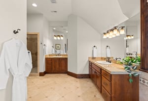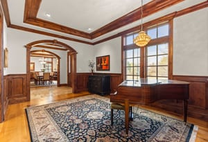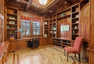 Designed with both function and flexibility in mind, the main level features a custom old-world library, an inviting secondary primary bedroom with ensuite, and two powder baths—an exceptionally livable layout for both everyday living and entertaining.
