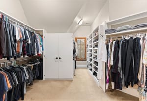 Upstairs, the home offers five bedrooms and four bathrooms, designed for both privacy and comfort. The primary suite is a true retreat—spacious and inviting, including a dedicated sitting area with a fireplace and desk space, along with a spa-like five-piece bath featuring dual vanities and refined finishes. The primary closet does not disappoint with both natural light and ample space for all your personal belongings.