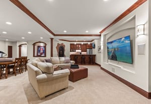 Updated and meticulously maintained, the home reflects exceptional pride of ownership throughout. The professionally finished basement by B&B Design Build adds significant livable space, anchored by a custom 1,000-bottle climate-controlled wine cellar and full bar with an additional third dishwasher—perfect for entertaining. Further, the lower level offers a spacious family room featuring a dedicated theater area, complemented by a high-end sound system—ideal for watching sports or enjoying movie nights. Additional spaces include an exercise area, games room, a large bedroom, 3-quarter bath, along with a horizontal climbing wall, Harry Potter Room under the stairs, craft area, flexible bonus space, and multiple storage areas.