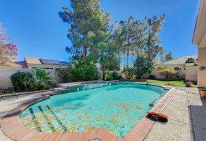 Stunning single-story 4-bed, 3-bath cul-de-sac gem with heated pool/spa, , RV parking & NO HOA! kitchen, granite, new flooring, dual fireplaces, 3-car garage, new HVAC under warranty. Backyard oasis awaits!