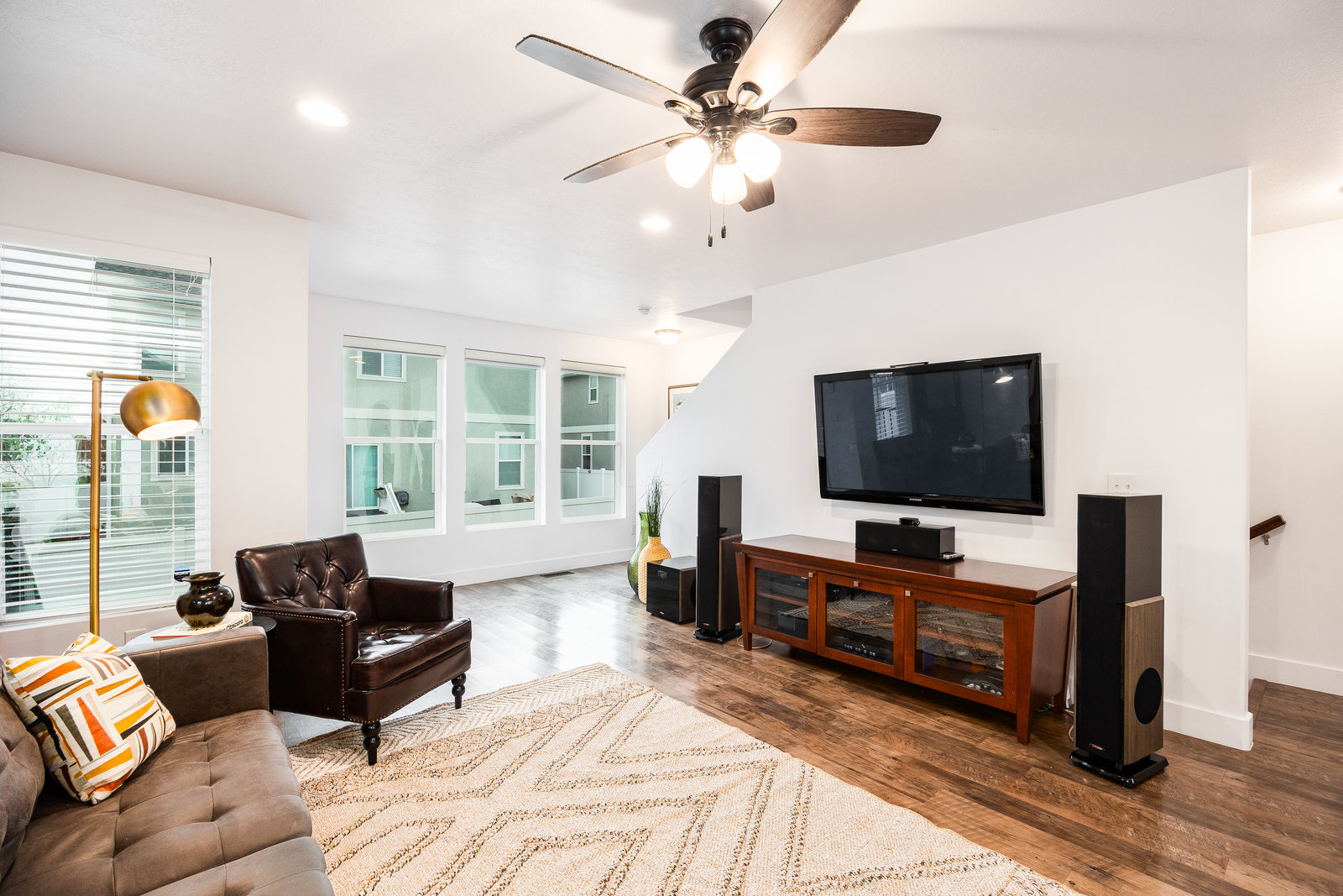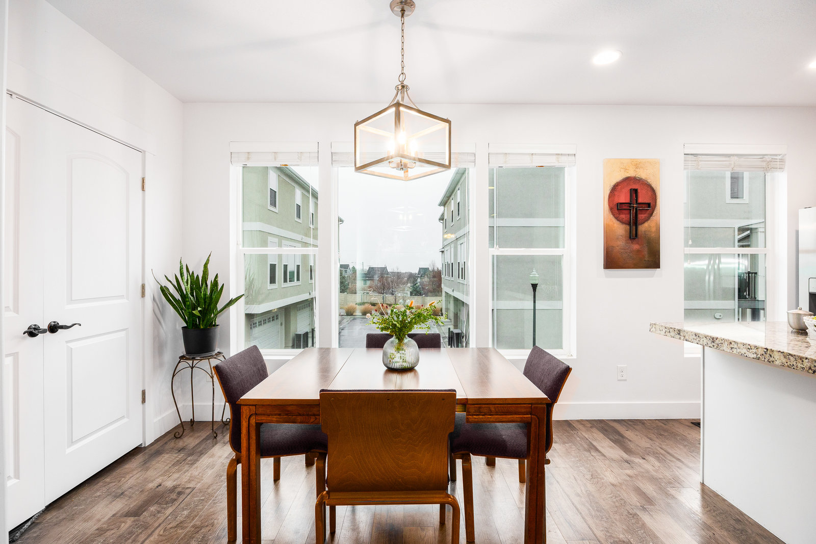 Welcome to this modern, newer-construction townhome in Glenmore Village featuring an open floor plan filled with natural light. Enjoy a spacious kitchen with abundant counter space—perfect for cooking or crafts—plus a convenient pantry and a main-level powder bath for guests. The dedicated, fenced outdoor space offers beautiful Wasatch Mountain views and is ideal for relaxing or entertaining.
