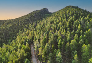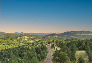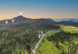 Own your own mountain. Set on 225 private acres crowned by the dramatic cliffside of Riley Peak, this extraordinary Conifer estate is among the most breathtaking land offerings within 30 miles of Denver. A paved 1.2-mile driveway begins at the gated entrance, winding through towering evergreens before reaching a second private gate at the residence—providing year-round access and a level of privacy rarely found this close to the city.