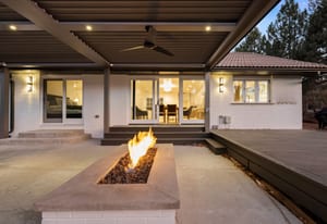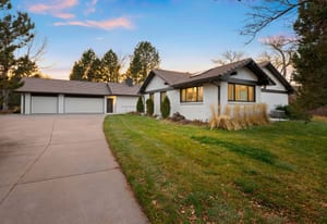Welcome Home to One Club Lane! Step into a beautifully updated modern ranch set on a lush lot just steps from Columbine Country Club. The home’s understated exterior hints at the refined elegance within, offering luxurious yet effortless living across a light-filled main level, with additional comfort and flexibility in the finished lower level. Inside, natural light and softly toned white-washed wood floors unify the open layout. The foyer flows into an inviting dining area and onward to the bright gourmet kitchen—complete with a waterfall quartz island, Wolf and Sub-Zero appliances, and a serving window that expands living outdoors. A highly functional butler’s pantry adds an additional oven, dishwasher, microwave, coffee bar, and exceptional storage. The main living spaces are anchored by modern gas fireplaces, creating warmth and balance, while the private bedroom wing offers three serene suites. The primary retreat opens to a private patio and features a luxurious five-piece bath and spacious dressing room for a spa-like feel. Conveniently located near the family room, the laundry area connects directly to the three-car garage. A nearby staircase leads to the lower level, offering a generous great room, an additional bedroom with egress windows, and a full bath—ideal for guests or recreation. Outdoor living shines beneath a Struxure louvered pergola with remote-control shades, heaters, ceiling fans, and a gas firepit. Mature trees and a charming footbridge to the adjacent par-3 course create a private, resort-like setting. Just minutes from downtown Littleton, Chatfield Reservoir, and miles of scenic trails, this exceptional residence blends modern ease with timeless sophistication