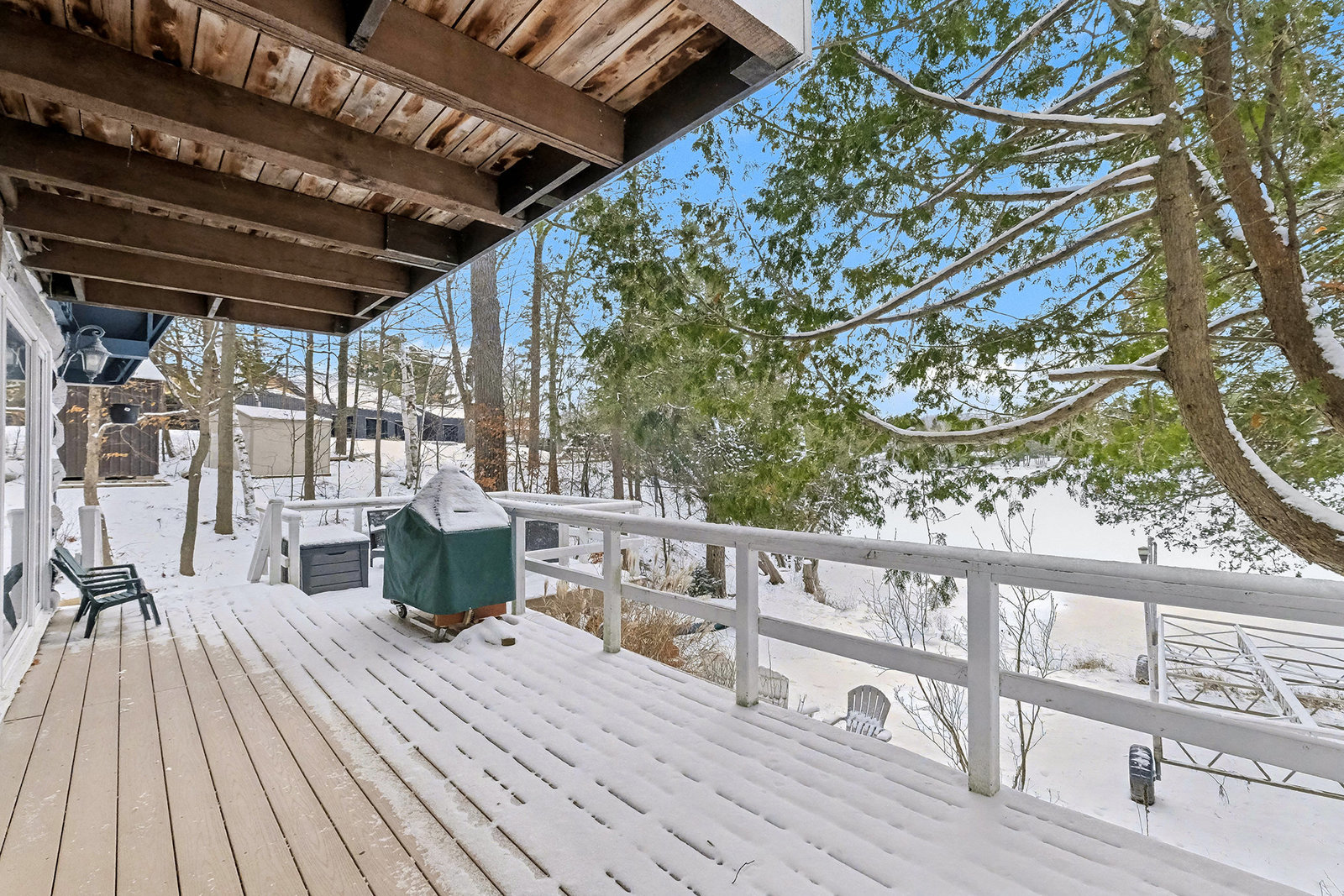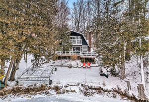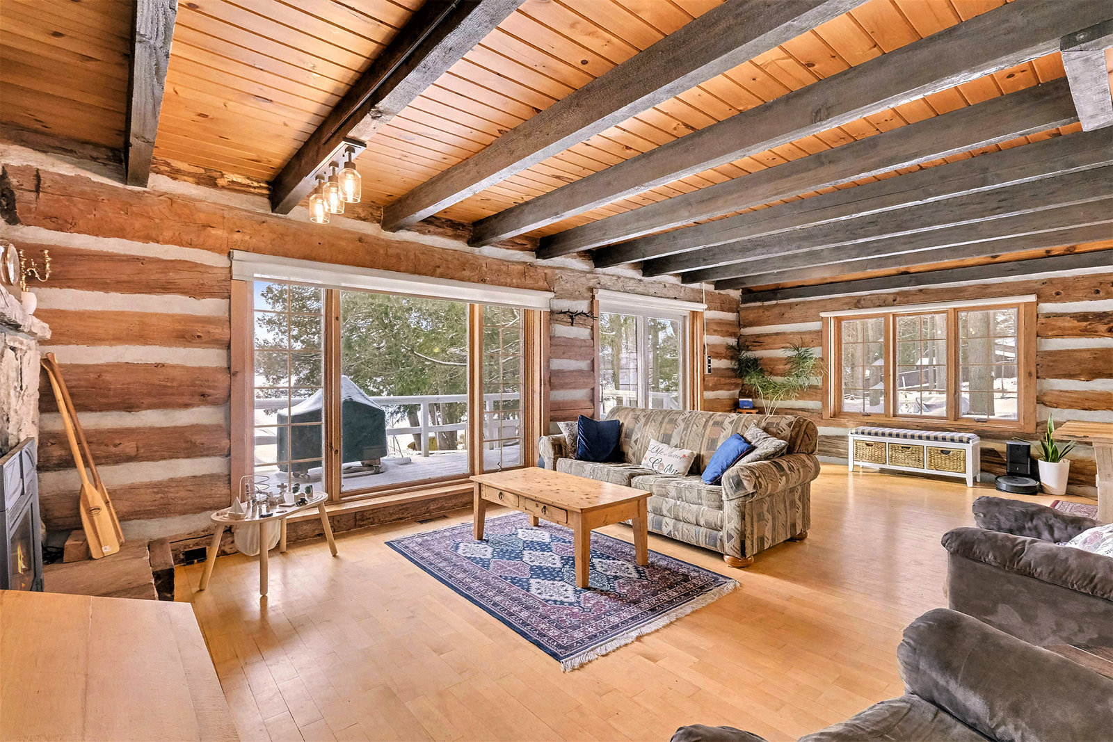 Discover your perfect lakeside retreat on the pristine sought after shores of Otty Lake! This charming year round 4-bedroom, 2-bath home offers an incredible 136 feet of waterfront with approx 4 feet of depth right off your private dock - ideal for swimming, fishing, or simply enjoying those peaceful mornings with your coffee. You will love the character and charm of this fabulous log home. Step inside to find a thoughtful design throughout with a convenient main floor bedroom perfect for guests (or office if desired). The heart of the home features exposed beams and a cozy propane fireplace, creating the perfect ambiance for quiet evenings after a fun day on the water. The dining room has been recently enhanced with a stylish coffee bar featuring a cleverly concealed dishwasher. The 2nd level features a spacious primary bedroom with private deck, 2 additional bedrooms and 3pc bath with jet tub. The full unfinished basement with walkout access provides endless possibilities for customization while offering excellent storage. Outside, you'll appreciate the generous lot size and the 12x16 storage shed for all your lake toys and seasonal equipment. The location couldn't be better - situated conveniently next to a boat launch, yet tucked away enough to enjoy tranquil privacy. The charming Town of Perth is just a short drive away, offering shopping, dining and essential services. Whether you're seeking a permanent residence, vacation getaway, or investment property...