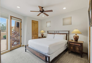 Rare opportunity to own a 50% ownership of this amazing property at The Inn at Entrada. The Inn offers fully furnished short term rental (STR) zoned residences within the guard gated side of Entrada that include on-site concierge, hotel-style rental program, full access to the wellness center amenities including pool, spa, on-site instructor led classes, spa services, and to the Entrada golf course. This single-family detached home is 1,968 SqFt, 2 lockout ensuite bedrooms with full kitchen and a studio with a kitchenette providing flexibility for personal use and strong rental potential. The home also includes a 2 car garage, and great covered patio area with outstanding golf course and Red Rock Mountain views. The ownership also includes a full equity Entrada golf membership, combining lifestyle and investment without the burden of maintenance. The Inn operates on a share profit model that historically has covered all expenses including operating cost, HOA fees, management fees, furnishings, and unit continuous maintenance making this the perfect investment opportunity. Owners are still responsible for property taxes. Some ownership transfer fee may apply.