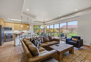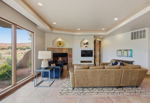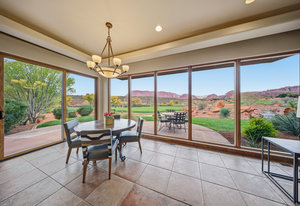 The Entrada Golf Course features their recently redesigned course by the distinguished David McLay Kidd. As part of the Troon Prive Golf Course Network, Entrada has been rated the #2 best course in Utah with its par 72 course that extends across 7,280 yards of some of the most majestic desert landscape in the southwest. The community of Entrada includes a guard gate, clubhouse, two outdoor pools and spa, indoor pool, exquisite dining, fully equipped fitness center offering many fitness and yoga classes, tennis/pickleball courts, and a playground. The wellness center includes relaxing spa services such as facials, pedicures, massages, and body treatments. The community is centrally located in the beautiful city of Saint George, which is proud to now host the PGA Tour at Black Desert, multiple LPGA tournaments at Copper Rock, and many notable events, such as the World Championship of the Ironman, St. George Marathon, Red Bull Rampage, and tons of other amazing well-known events. It's only a short drive to America's most astonishing national parks, such as Zion, Bryce, and the North Rim of the Grand Canyon; and state parks and national forests like Snow Canyon, Sand Hollow Reservoir, Gunlock Reservoir, Quail Creek Reservoir, and Dixie Forest. The word is out that at 2,700 feet above sea level, on the edge of the Mojave desert, Colorado Plateau, and the Great Basin, lies one of America's most beautiful and distinctive geological places. This tranquil home is the perfect setting for you to establish your own gathering place in the heart of Southern Utah. Furniture package available.