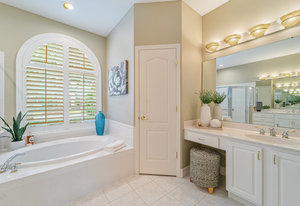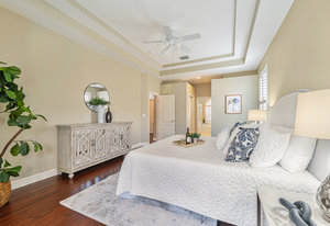 The owner’s retreat is a sanctuary of its own. Generously sized, it includes a large sitting area that invites quiet moments at the start or end of the day. Two walk-in closets provide exceptional storage, while the spa-inspired bathroom offers a soaking tub, separate shower, dual vanities, and a private water closet, delivering comfort, privacy, and everyday indulgence.