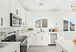 Experience modern living at its finest in this beautifully crafted, brand-new custom home with no HOA and breathtaking mountain views. Designed with superior quality and energy-efficient features, this 1,740 sq ft residence offers 3 spacious bedrooms and 2.5 baths. Enjoy contemporary finishes throughout, including luxury vinyl plank flooring, soft-close cabinetry, and sleek stainless-steel appliances. The gourmet kitchen boasts an island, breakfast bar, and pantry, perfect for cooking, entertaining, and everyday comfort. The open-concept living area provides abundant natural light and a seamless flow for relaxation. With a large yard and thoughtful storage throughout, this home delivers exceptional beauty, function, and modern style. All furniture has been virtually staged.