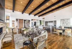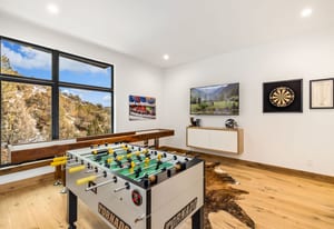 Perched on arguably the most coveted homesite in Cordillera Valley Club, 106 Juniper Lane captures all day sun, extraordinary views & true Vail Valley convenience. Set within the gates, enjoy a golf cart lifestyle, plus sunrise to sunset panoramas of the Vail Back Bowls, Beaver Creek ski slopes, sweeping Lake Creek views toward the Sawatch Range, & westerly toward Bellyache for unforgettable evening sunsets & alpenglow. Completed in 2018, designed by Hans Berglund, the home is filled with natural light, large format glass, soaring ceilings on both the main & lower levels, and dramatic 10 ft panoramic doors. The layout is ideal for multigenerational living & hosting with 5 spacious ensuite bedrooms plus a game room that could convert to a 6th sleeping area, including a main level primary suite and walk-out lower level guest spaces. The great room features a sleek linear fireplace, built-in bar, and panoramic doors that fully open for a 30 ft opening span to the view deck, creating seamless indoor outdoor living. Main & lower levels open directly to over 2,000 SF of outdoor living. The walk-out lower level continues with a spacious family room, game room, second bar with wine storage, and panoramic doors opening directly to a lower patio outdoor living room with firepit, lounge seating, and a rare flat, grassy yard ideal for pets & play, bordered on the east by a year-round spring-fed stream. The primary suite is a true sanctuary with a spa-style bath, featuring a freestanding soaking tub positioned in front of panoramic glass & doors opening to a private balcony, inviting fresh mountain air and the sound of the stream below while you take in views from the Vail Back Bowls to Beaver Creek. A connected mother-in-law suite with its own entrance offers flexibility for a nanny, pilot, or long-term guests, and a rare 1263 sq ft garage provides exceptional functionality for vehicles, golf carts, & gear. Seller is a licensed real estate agent.