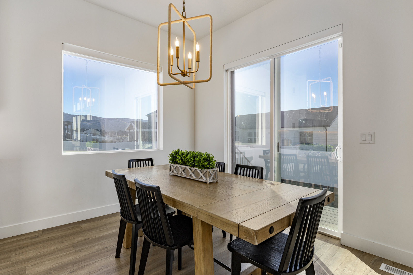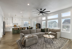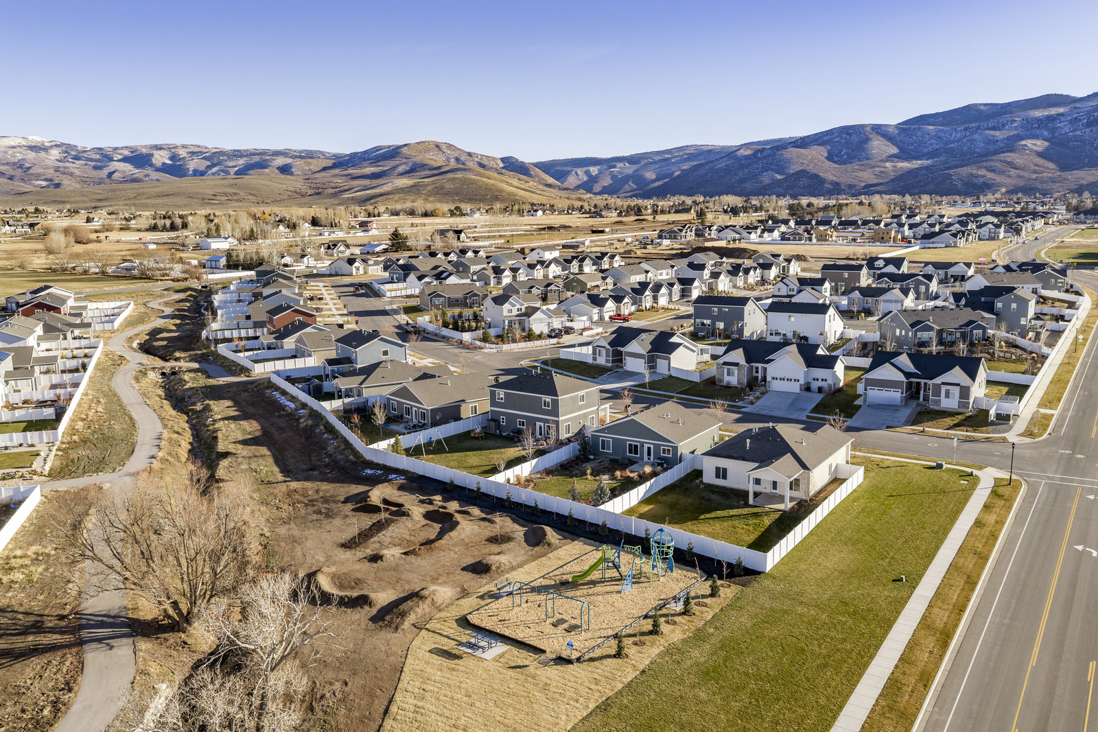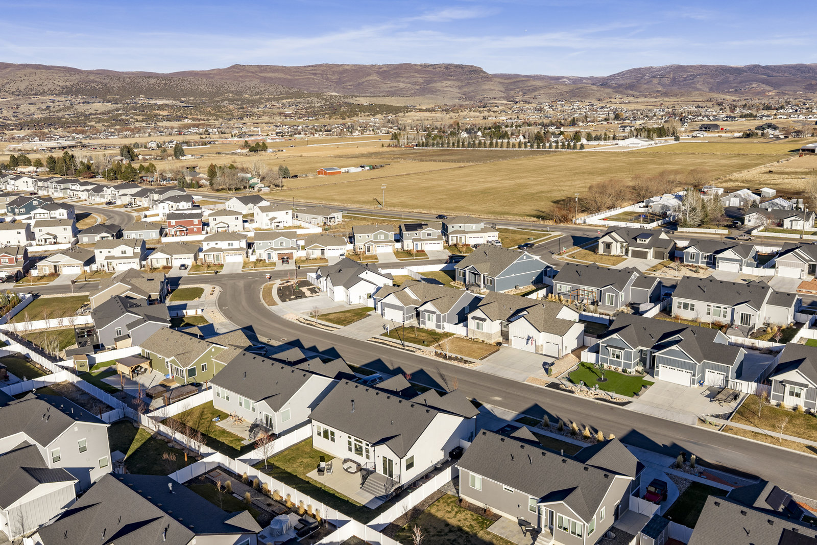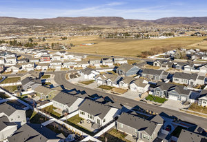 Located in the highly desirable Brookside neighborhood of Heber City, this home blends contemporary farmhouse design, walkable convenience, and access to Utah’s premier outdoor lifestyle. Built in 2022, this thoughtfully designed residence spans 3,278 square feet and offers upgraded modern finishes, functional living spaces, and exceptional value in one of the Wasatch Back’s fastest-growing communities. The home features main-level living with both the primary suite and a secondary bedroom on the main floor, providing a highly functional floor plan and single-level convenience. Ten-foot ceilings, large windows, and luxury vinyl plank flooring create bright, open interiors with a clean, modern aesthetic. The designer kitchen highlights the seller’s most significant upgrades, including custom cabinetry, quartz countertops, a marble tile backsplash, double ovens, an integrated hood vent, and a gas cooktop. The open-concept layout flows seamlessly into the dining and living areas, perfect for entertaining and everyday living. The main-level primary suite offers a private retreat with a spa-inspired bathroom, dual vanities, a large euro-glass walk-in shower, and a generous walk-in closet. The lower level adds flexibility and space with additional bedrooms, a large bonus family room, and high ceilings. Outdoors, enjoy a fully fenced and landscaped yard with a turf dog run, spacious patio, and a gas stub for a future grill or fire pit. Walk to schools, parks, and neighborhood paths, with easy access to Deer Valley’s East Village and Jordanelle Reservoir (15 minutes), Park City (25 minutes), and Salt Lake City International Airport (45 minutes). Special Financing Incentives available on this property from SIRVA Mortgage.
