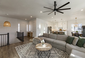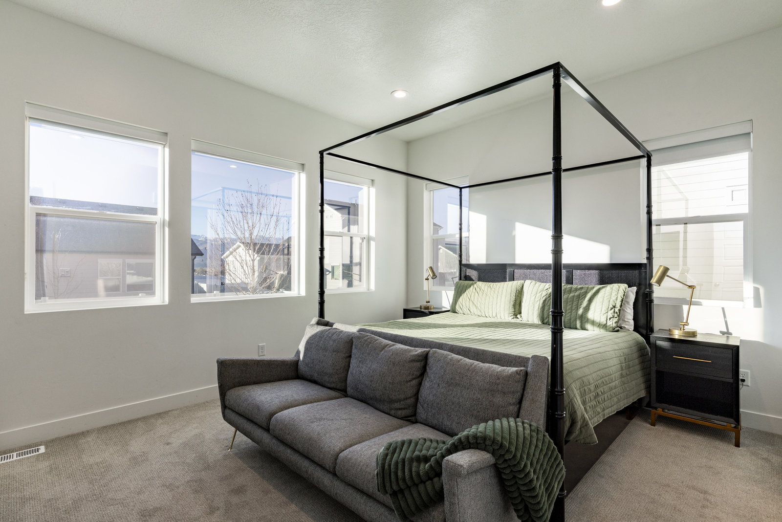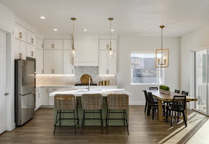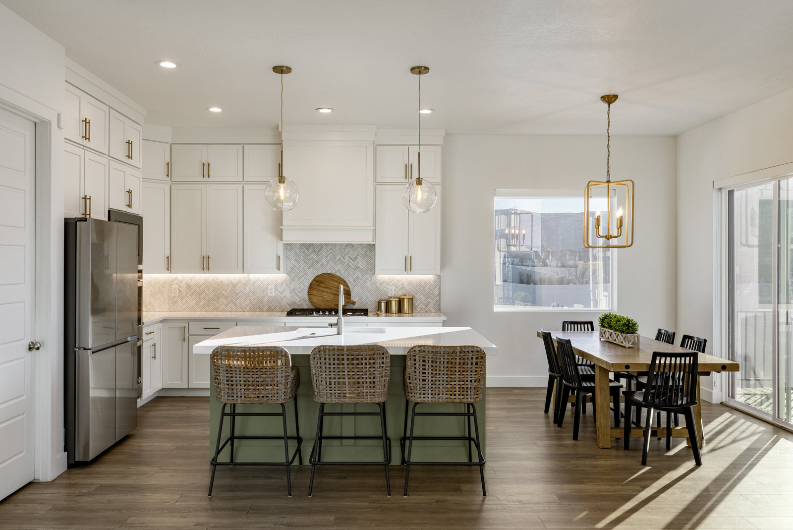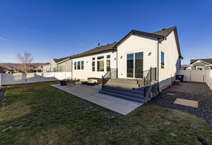 Located in the highly desirable Brookside neighborhood of Heber City, this home blends contemporary farmhouse design, walkable convenience, and access to Utah’s premier outdoor lifestyle. Built in 2022, this thoughtfully designed residence spans 3,278 square feet and offers upgraded modern finishes, functional living spaces, and exceptional value in one of the Wasatch Back’s fastest-growing communities. The home features main-level living with both the primary suite and a secondary bedroom on the main floor, providing a highly functional floor plan and single-level convenience. Ten-foot ceilings, large windows, and luxury vinyl plank flooring create bright, open interiors with a clean, modern aesthetic. The designer kitchen highlights the seller’s most significant upgrades, including custom cabinetry, quartz countertops, a marble tile backsplash, double ovens, an integrated hood vent, and a gas cooktop. The open-concept layout flows seamlessly into the dining and living areas, perfect for entertaining and everyday living. The main-level primary suite offers a private retreat with a spa-inspired bathroom, dual vanities, a large euro-glass walk-in shower, and a generous walk-in closet. The lower level adds flexibility and space with additional bedrooms, a large bonus family room, and high ceilings. Outdoors, enjoy a fully fenced and landscaped yard with a turf dog run, spacious patio, and a gas stub for a future grill or fire pit. Walk to schools, parks, and neighborhood paths, with easy access to Deer Valley’s East Village and Jordanelle Reservoir (15 minutes), Park City (25 minutes), and Salt Lake City International Airport (45 minutes). Special Financing Incentives available on this property from SIRVA Mortgage.