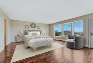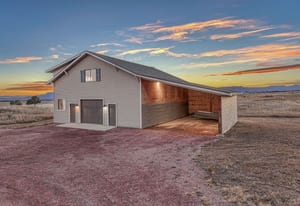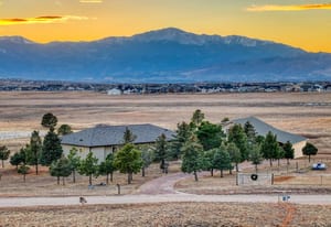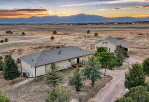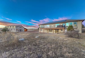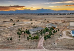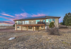 Incredible south Black Forest location with a fully remodeled rancher perfectly positioned on 5 acres featuring tremendous unobstructed views of Pikes Peak, 180 mile views of the surrounding mountain range including the Spanish Peaks. Parking for 10+ vehicles, a 2,700 sq ft barn w/ future guest apartment space. The main level is expansive and open with large windows providing amazing natural light - all centered with views at top of mind, newer Andersen doors, beautiful beetle kill hardwood floors, gas fireplace, vaulted ceilings and walk-out to the 39x11 deck w/ hot tub. Well appointed kitchen w/ granite counters, large island w/ eating space, commercial grade appliances with a full refrigerator and freezer, gas stove and marble backsplash. Main level primary suite w/ two closets, a walk-out to the back deck, bay window, sitting area, hardwood floors and upgraded 5 piece bath w/ standalone tub, double vanity and large shower w/ seamless glass surround. Spacious main level office w/ custom built-ins and French doors. Newer owned solar system and septic system. The two level 2,700 sq ft outbuilding could be used for many uses including barn, workshop, car collection, pickle ball court - the possibilities are endless. Large overhang perfect for covered RV storage. The second level of the barn would make an amazing guest apartment or office space. It is framed, has LVP flooring and is pre-plumbed/framed for a bathroom, large living space w/ kitchen and bedroom, tons of large windows with amazing views of the entire front range. The property is zoned for horses, chickens and outbuildings. No HOA. Fully finished walk-out lower level w/ two additional large bedrooms, a remodeled bathroom w/ double vanity and a large family room. The grounds are lush meadow and ponderosa pines providing privacy to the east.