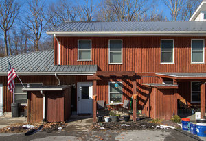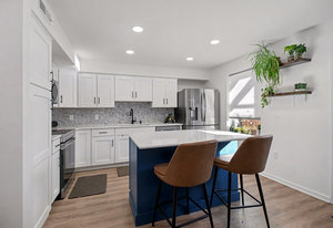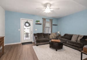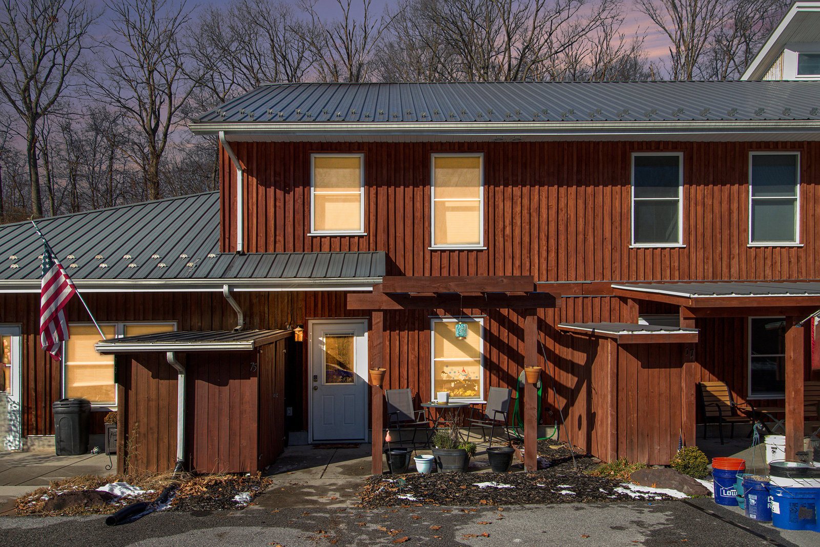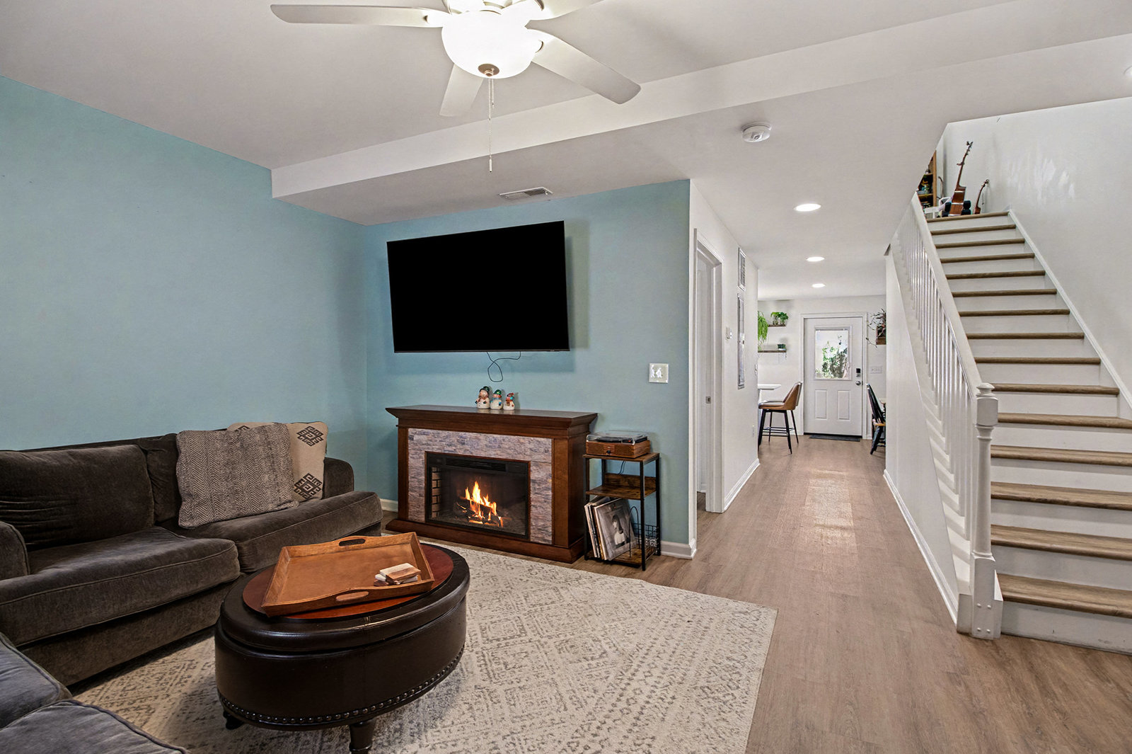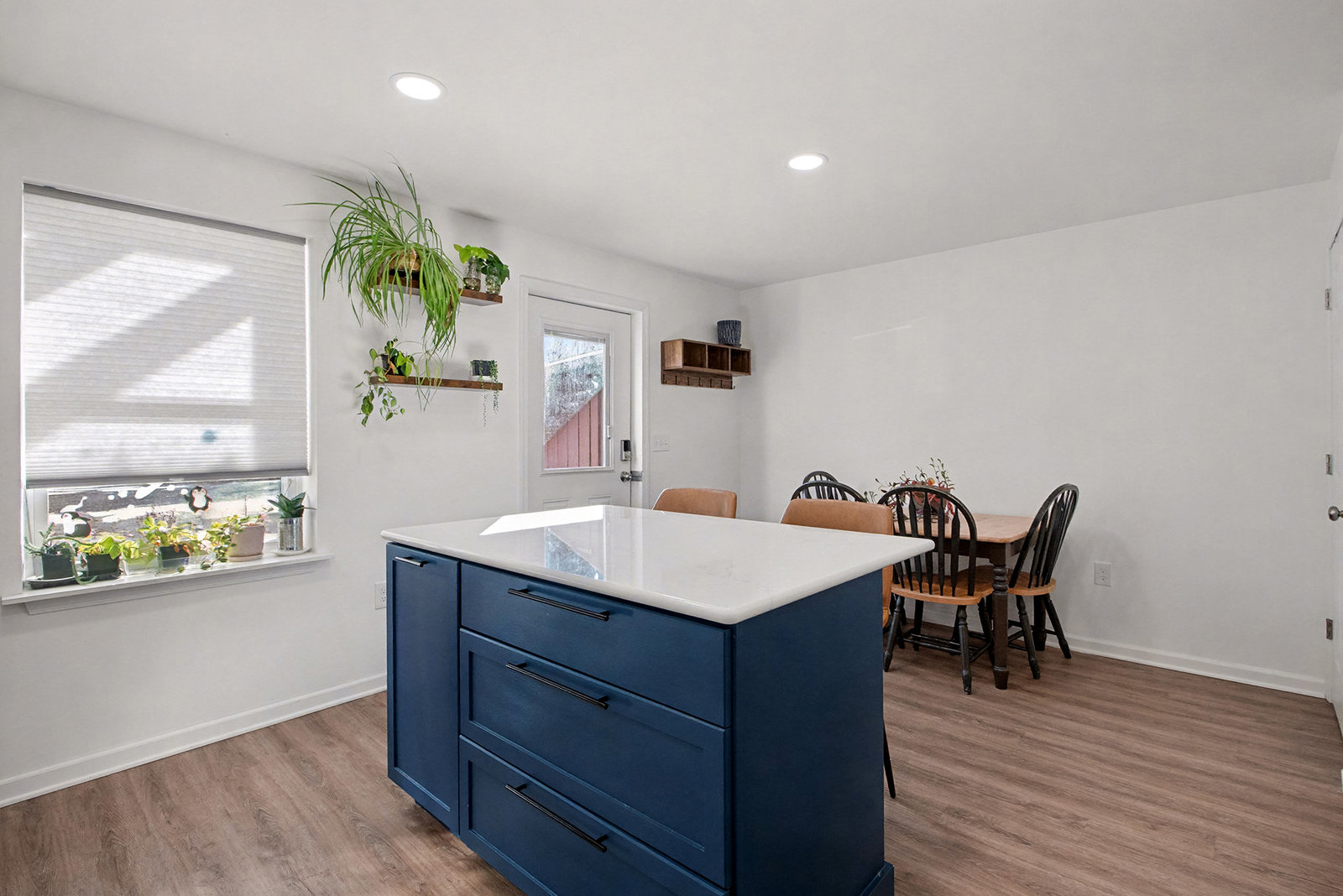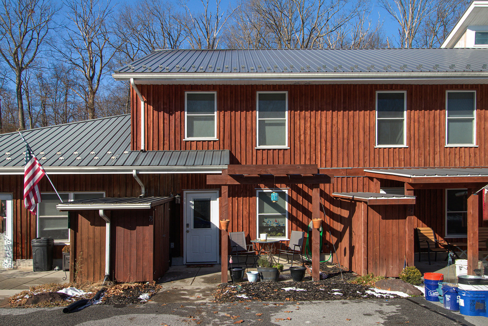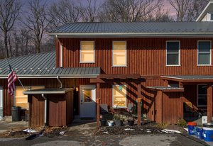 Exceptional condition and truly move-in ready, this contemporary and economical townhome in Petersburg Commons offers comfort, style, and low-maintenance living. The main level features an open combination kitchen and dining area with a brand new island that conveys, quartz countertops, farmhouse sink, custom backsplash. Stainless steel appliances include a built-in microwave, stove, refrigerator, and dishwasher. Recent laminate flooring installed in 2022 runs throughout the entire home. The main level also includes a convenient half bath with laundry. Upstairs offers three bedrooms and a full bath. Skylights that fill the space with natural light. New windows 2022. Step outside to enjoy extensive high-end landscaping, a completely fenced yard, electric awning, firepit, and outdoor storage. Two paved parking spaces are located directly in front of the home. The property is situated on a cul-de-sac with low HOA fees of just $15 per month. Located near Routes 322 and 11/15, this home offers easy access for commuting while maintaining a quiet neighborhood setting. With potential 100% financing options available, this is a package that is hard to beat. Move right in and enjoy maintenance-free living. Schedule your private tour today and start your next chapter here.