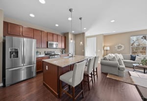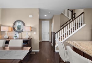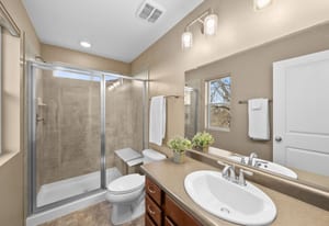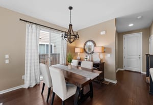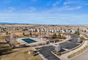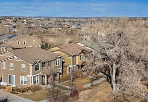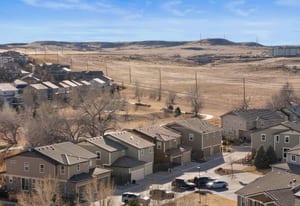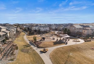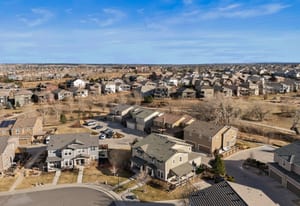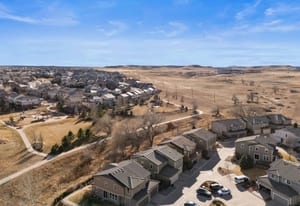Welcome to this immaculately maintained Meridian Villas townhome. Situated on a serene greenbelt setting with mature trees, peaceful views and front door access to trails and Ashgrove Park this home is a rare find. The main floor offers an open floor plan with a gourmet eat-in kitchen featuring a granite island, under mount sink, upgraded 42" cabinets, pantry, stainless steel appliances, and a gas range. Beautiful engineered hardwood flooring flows throughout the entire main level, with an inviting living room with a contemporary gas fireplace as the focal point. There is ample recessed lighting and upgraded Hunter Douglas Blinds. The upper level features two generous bedrooms plus a versatile loft space ideal for a home office, second living area, or fitness room, along with a convenient laundry room with ample storage (washer and dryer included). The beautiful primary suite showcases serene greenbelt views, an en-suite ¾ bathroom, and a spacious walk-in closet. The 650 sq ft unfinished basement offers exceptional storage or expanded living space potential. Outside, enjoy your private fenced and xeriscaped side yard and patio perfect for entertaining, or relax on the charming front porch with peaceful greenbelt views. Additional highlights include an attached deep two-car garage with tall ceilings plus overflow public parking behind the unit. Meridian Village's amenities include a clubhouse, outdoor pool, gym, playgrounds, and extensive walking/biking trails. Ashgrove Park is located just behind the unit just past the greenbelt. The location is unbeatable—just 10 minutes to RTD Light Rail, and minutes to Skyridge Hospital, Denver Tech Center, Park Meadows Mall, Lone Tree and vibrant Downtown Parker. This is the perfect blend of peaceful greenbelt living with urban convenience.