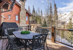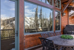 Set within one of Deer Valley ®’s most picturesque and convenient locations, the exclusive Larkspur townhomes in Empire Pass define an exceptional mountain lifestyle. Rarely available, this Westside residence is discreetly nestled among mature aspen and fir trees, with dramatic views toward Lady Morgan Bowl. Just steps from the Tower Club, Silver Buck ski trail, and Silver Strike chairlift, this coveted mid-mountain location allows owners and guests to enjoy effortless access to First Tracks skiing, well ahead of lower-mountain traffic. Upon entering, guests are immediately captivated by the home’s breathtaking views. Designed for maximum comfort and refined mountain luxury, the expansive great room features vaulted, beamed ceilings, a floor-to-ceiling stone fireplace, and a wall of windows that frame unobstructed western vistas. A spacious deck off the great room provides the perfect setting for relaxing or outdoor grilling. The open-concept kitchen and dining area is ideal for both entertaining and everyday living, offering bar seating and a 60-inch round dining table that expands to accommodate up to ten guests. The gourmet kitchen is equipped with granite countertops and premium Viking stainless steel appliances, Sub-Zero refrigerator with the layout allowing the chef to remain connected with family and friends. The main-level primary suite is a private retreat, highlighted by vaulted ceilings, views to the ski slopes, a generous walk-in closet, and a luxurious ensuite bath with a jetted tub and oversized walk-in shower. Three additional bedrooms on the lower level each feature ensuite baths and provide flexible accommodations for family and guests. An upstairs loft offers a quiet office space with ample storage. The lower-level family room is an inviting gathering area, complete with a professional-quality shuffleboard table, 62-inch HDTV, built-in wine refrigerator, and refrigerated drawers — perfect for après-ski entertaining. After a day on the slopes, unwind in the private hot tub on the lower stone patio. During summer months, enjoy evenings on the patio around the fire pit while taking in the spectacular night sky. Additional features include a heated driveway and walkway, an attached heated two-car garage, and easy year-round access to mountain amenities. The HOA’s complimentary shuttle service provides convenient transportation to Deer Valley and Park City for dining, shopping, and entertainment.