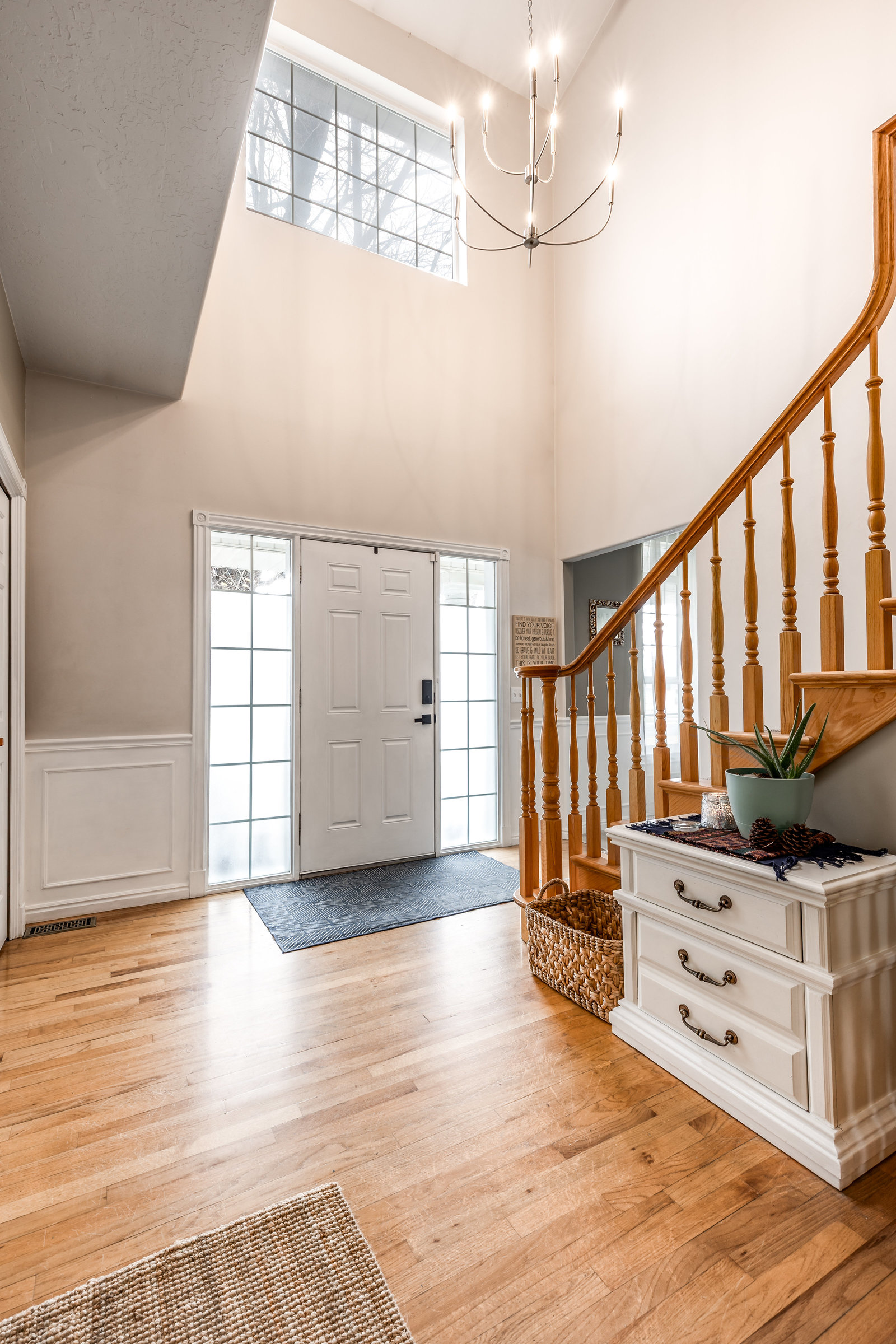 First time on the market, this lovingly maintained custom home sits on over half an acre in the heart of Draper's desirable east bench. A fully fenced yard with mature trees creates a private, park-like setting, while the inviting wraparound front porch offers a warm welcome. Inside, the open family room and kitchen serve as the heart of the home, featuring expansive windows that fill the space with natural light and a cozy fireplace that adds warmth and charm. The spacious primary suite includes a walk-in closet, and picture windows throughout provide light and comfort from every angle. An unfinished basement offers endless potential for future expansion and customization. The oversized ...
