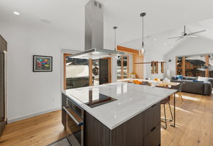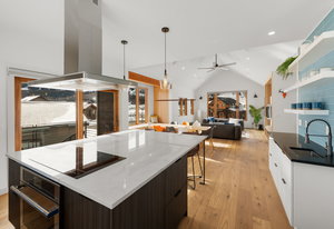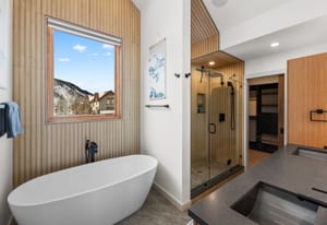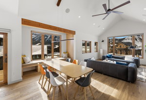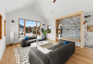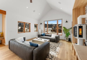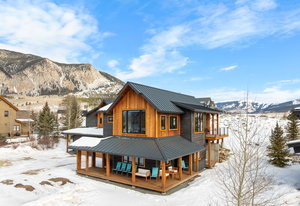 Completed in 2025, this awesome new Crested Butte design-build is located on Lexie Court, a quiet cul-de-sac corner in the highly desirable Larkspur community. The property backs to permanent open space and faces south and west offering dramatic mountain views of Whetstone, Red Lady, Gothic and the Paradise Divide. The home's living spaces enjoy excellent solar gain and all day Colorado light. Interior highlights include vaulted ceilings, white oak wide plank flooring, forged iron rails, gorgeous doors and trim, designer lighting treatments and beautiful tile, cabinetry, vanities and natural stone tops throughout. The thoughtful floor plan puts the primary suite upstairs along with the office, kitchen, living and dining areas. There are two bedroom suites on the lower level along with a bonus media room that could easily function as a fourth bedroom too! Other highlights include efficient in-floor radiant heat, a large gear room off the oversized 796 SF attached and heated garage, covered decks on both levels, a wrap around covered porch and a hot tub out back. The home features state-of-art A/V, automated blinds, thermostats and LED lighting. There are two EV charging ports in the garage.