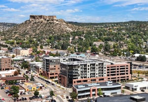 Experience elevated downtown living in this outside-corner luxury condo at Encore in the heart of Castle Rock. Enjoy stunning Pikes Peak, mountain, and city views from inside the residence and from the private 4th-level balcony. Designed for both full-time living and lock-and-leave convenience, this upgraded unit features custom cabinetry in both bedrooms, including a primary suite with an exceptional custom walk-in closet and built-in storage.