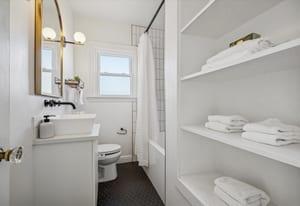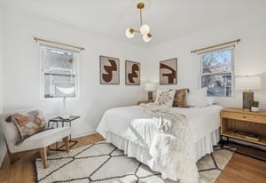 The main-floor bathroom features a stylish vessel sink, eye-catching lighting, built-in shelves and hexagon floor tiles. Downstairs, the fully finished basement offers a warm and inviting flex space, storage closet, laundry room, an additional bathroom, and a guest bedroom with wood-plank ceiling details. Step outside to the backyard retreat, where a charming patio with pavers and ample privacy make for a serene outdoor space. Situated in an unbeatable location, this home is less than a mile from local favorites like Steam Espresso Bar, Uno Mas Taqueria, Izakaya, Kaos Pizzeria and Sweat Den.