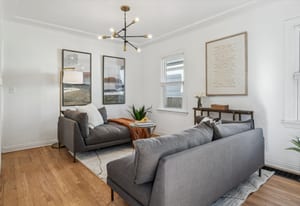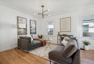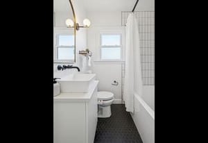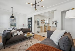 contemporary style. Gleaming original hardwood floors flow throughout the open main level, complemented by striking