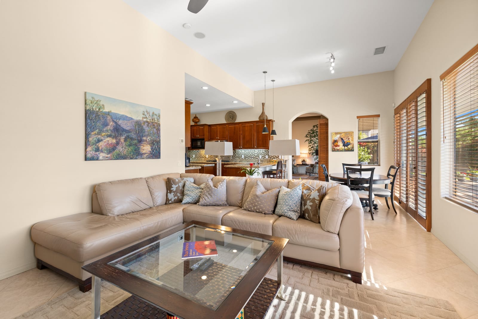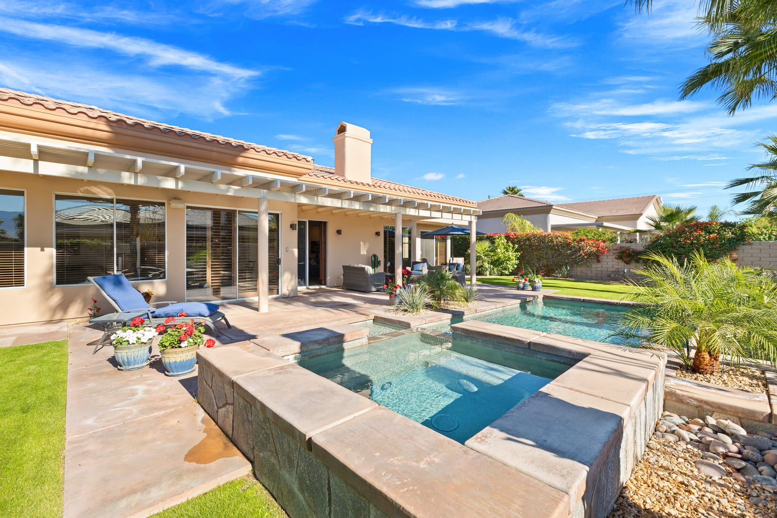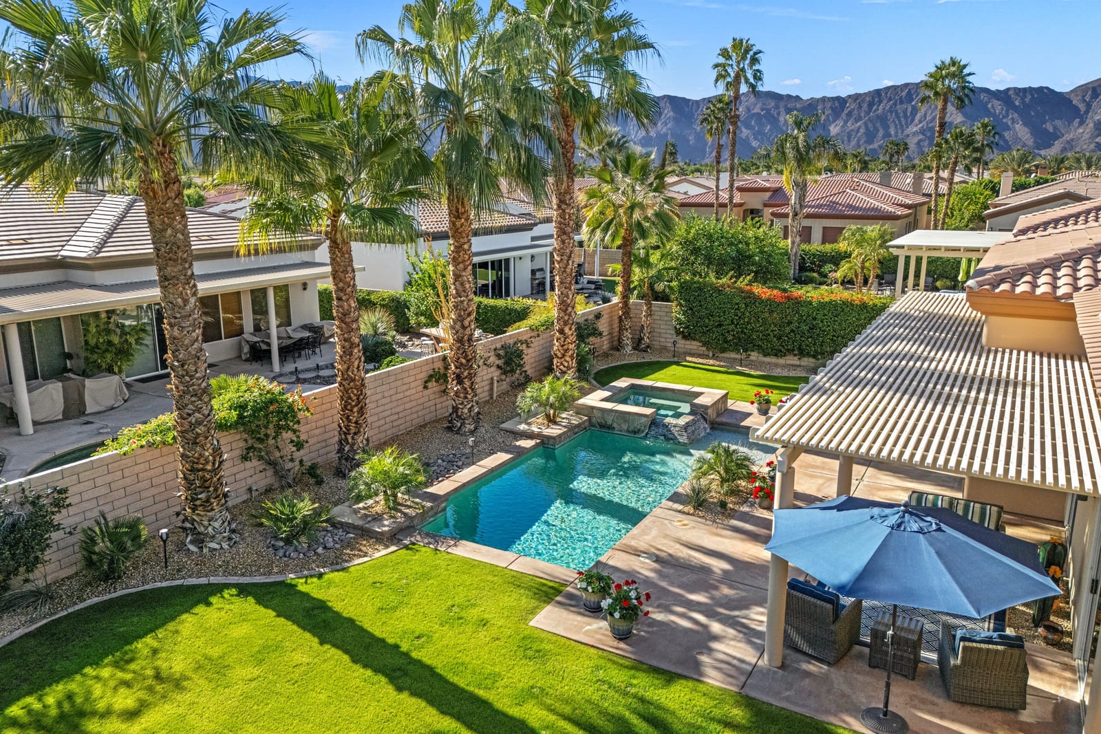 Gated South La Quinta 4 Bd. Pool Home with ideal location near premier Golf, Dining, Shopping with Santa Rosa Mtn. Views. Located in the heart of South La Quinta, near premier shopping, dining, and world-class golf, this desirable and coveted Phase 1 Trans West home is tucked away on a generous 10,454 sq ft cul-de-sac lot within the quiet, low-key, and friendly community of La Quinta Renaissance. This 4-bedroom, 3.5-bath floor plan with 2,628' of interior living space is thoughtfully designed for comfort and flexibility, making it ideal as a full-time residence or a lock-and-leave seasonal retreat. French doors open to a beautifully landscaped backyard featuring a sparkling pool and mature ...
