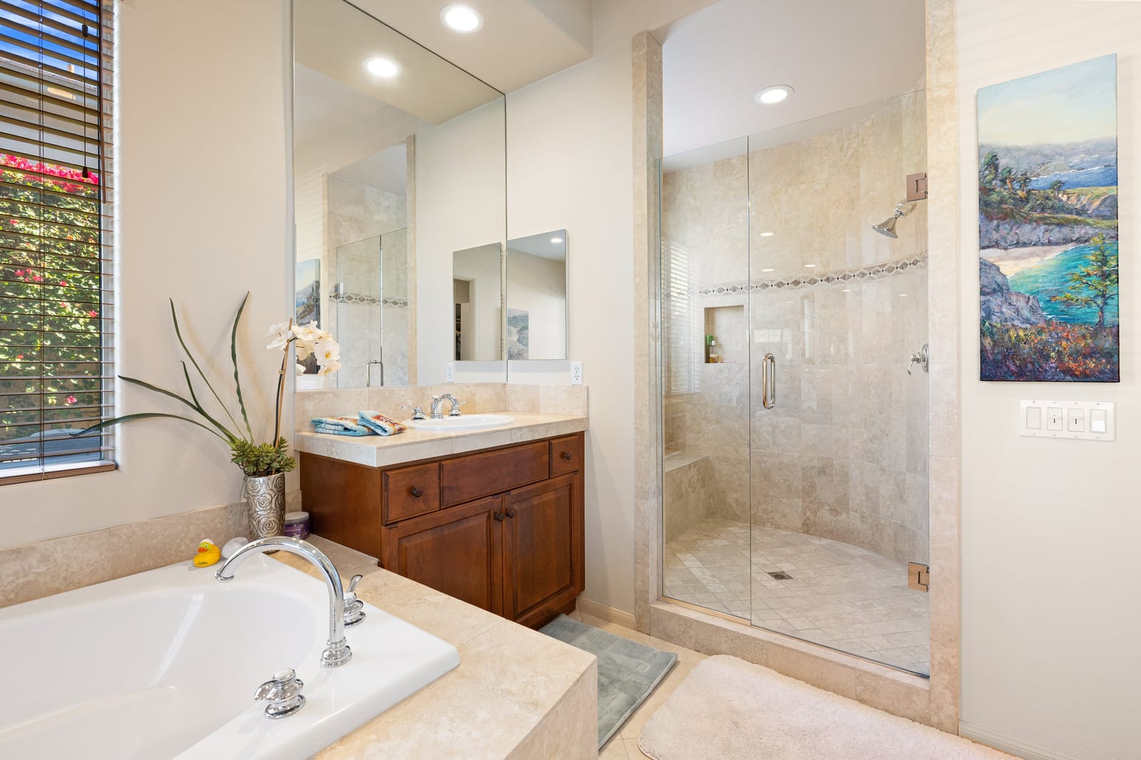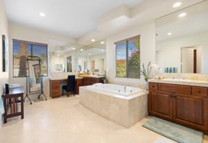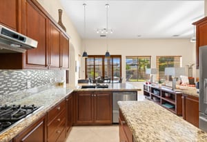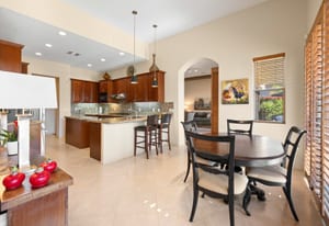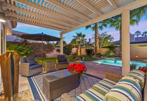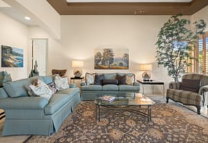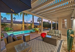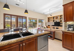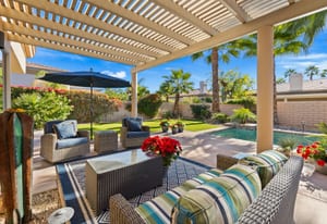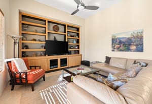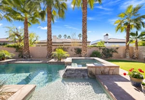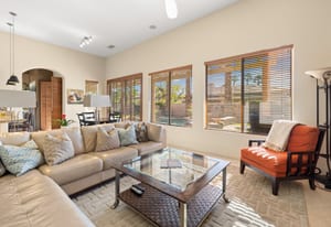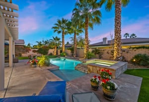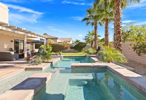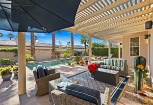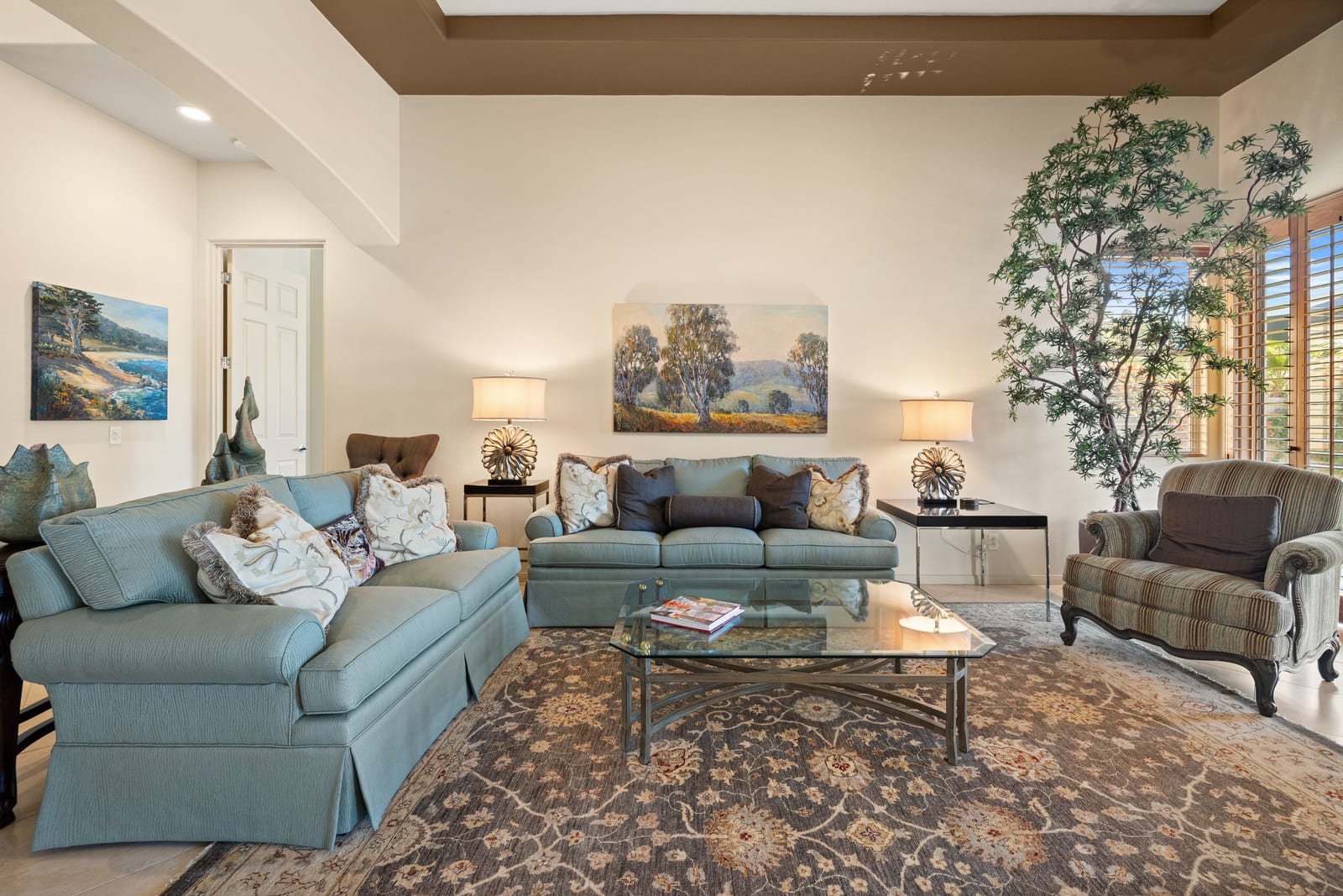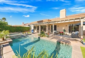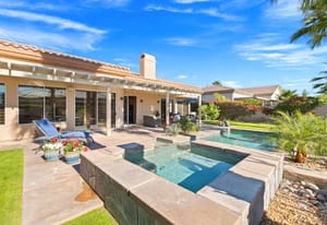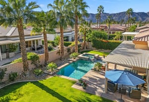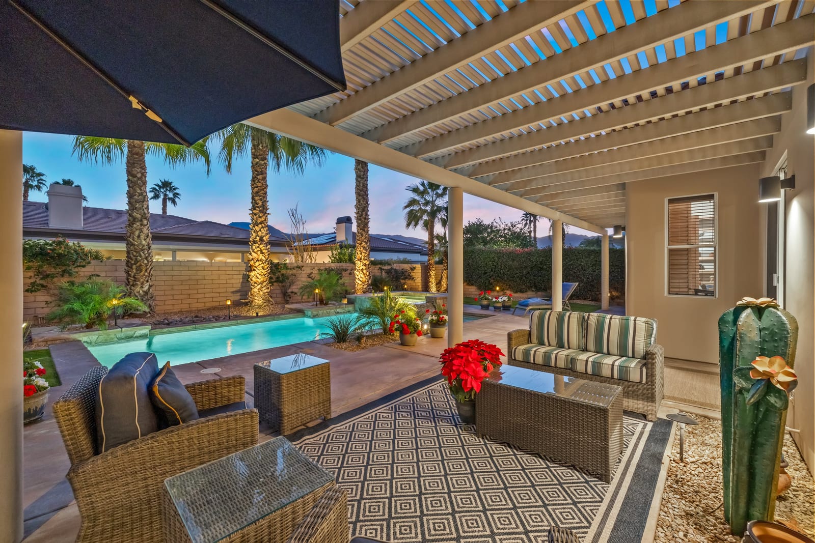 Gated South La Quinta 4 Bd. Pool Home with ideal location near premier Golf, Dining, Shopping with Santa Rosa Mtn. Views. Located in the heart of South La Quinta, near premier shopping, dining, and world-class golf, this desirable and coveted Phase 1 Trans West home is tucked away on a generous 10,454 sq ft cul-de-sac lot within the quiet, low-key, and friendly community of La Quinta Renaissance. This 4-bedroom, 3.5-bath floor plan with 2,628' of interior living space is thoughtfully designed for comfort and flexibility, making it ideal as a full-time residence or a lock-and-leave seasonal retreat. French doors open to a beautifully landscaped backyard featuring a sparkling pool and mature ...