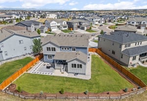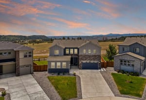 NO MONTHLY HOA! Perched on a premium lot at the end of a quiet cul-de-sac in Castle Pines, this stunning 7-bedroom residence offers a perfect blend of thoughtful design and breathtaking views of Pikes Peak and the Front Range. Inside, you're welcomed by soaring ceilings and an open floorplan that allows for abundant natural light. The chef’s kitchen features granite counters, a chic marble backsplash, walk-in pantry, osmosis filtration system, and upgraded stainless steel appliances—including a gas cooktop with sleek hood. The adjacent great room has oversized windows, built in speakers and a vaulted ceiling that flowing seamlessly into the two-story dining room that is anchored by an eye-catching modern chandelier. Step onto the covered patio for effortless indoor-outdoor living which is also an ideal spot to sip morning coffee while watching elk and deer at sunrise. Step down to a spacious stamped concrete patio and expansive backyard that invites year-round entertaining. The main level also includes a private bedroom with ensuite bath, ideal for guests or multigenerational living, a large home office, powder room, and owner’s entry with direct garage access. Upstairs, unwind in your luxurious primary suite, where you’ll catch colorful sunsets beyond the Front Range views. The spa-inspired bath offers dual vanities, an oversized glass-enclosed shower, and two walk-in closets with custom built-ins. Three additional bedrooms and two full bathrooms complete the upper level. The finished basement features 9' ceilings, a wet bar, bathroom, and two versatile bedrooms perfect for a home gym, theater, or playroom. Adding comfort and functionality, this home also offers a split 3-car garage, two HVAC systems, a whole-house humidifier and a whole-house water filtration system. With nearby trails, playgrounds, and peaceful natural surroundings, this home delivers luxury living in the heart of Colorado.