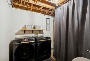 media space—ideal for guests or rental flexibility. A dedicated laundry room adds