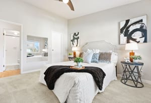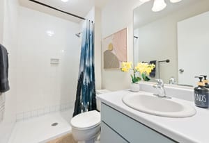 Both bedrooms are generously sized, with the primary suite offering a private en-suite bath. The home also includes a newer LG washer and dryer (2023) for added convenience.