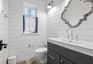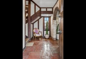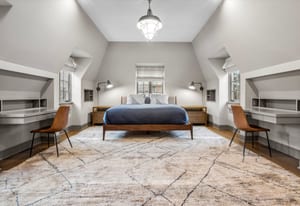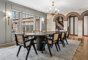 The architecture remains the focal point. Original timber, restored brick, and stone floors anchor the interiors. Signature Marvin windows, TruStile doors, and wide plank white oak flooring introduce a quiet modern contrast.