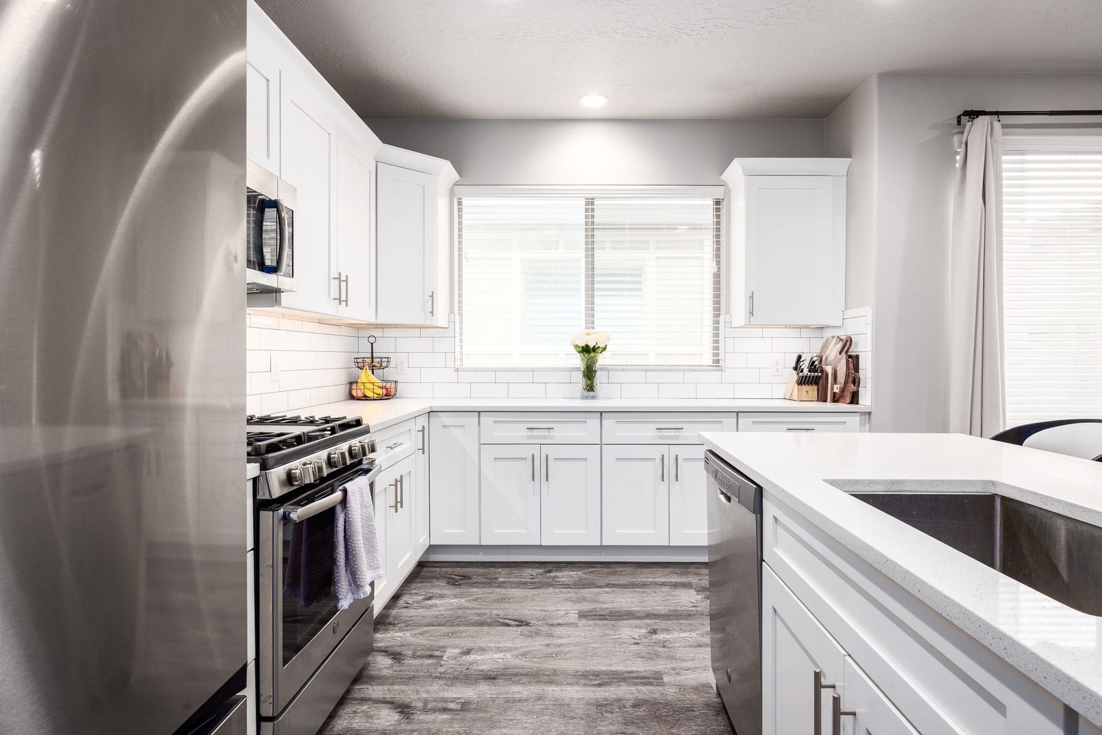 Enjoy unobstructed mountain views and exceptional walkability-stroll to Riverton Community Park with pickleball courts, the library, shopping, and dining. Just 5 minutes to I-15 for easy commuting throughout the Wasatch Front. Gourmet kitchen features custom tile backsplash, under-cabinet lighting, stainless steel appliances, and quartz countertops. The fully finished basement offers flexible living space-perfect as a 4th bedroom, home office, or entertainment area. Spacious primary suite boasts dual vanities, a generous walk-in closet, and an oversized bathroom. Quartz countertops shine throughout. Enjoy the convenience of a dedicated laundry room (not a closet!) and an impressive guest bath with ...