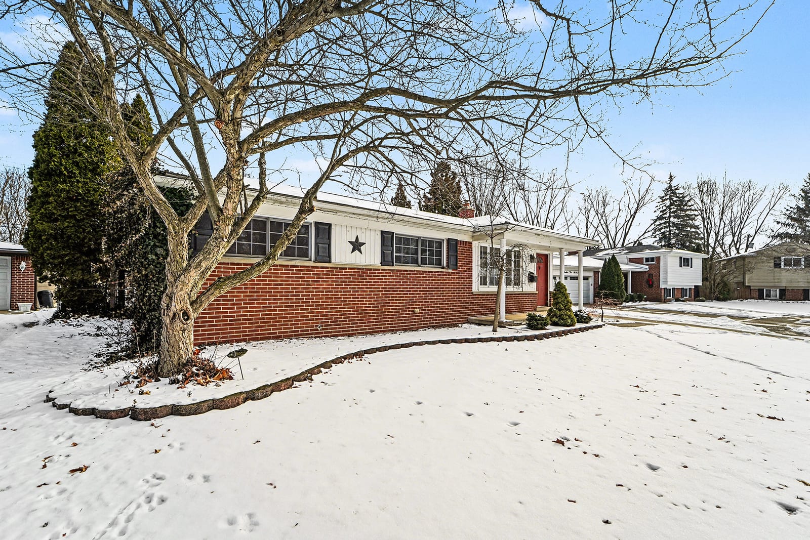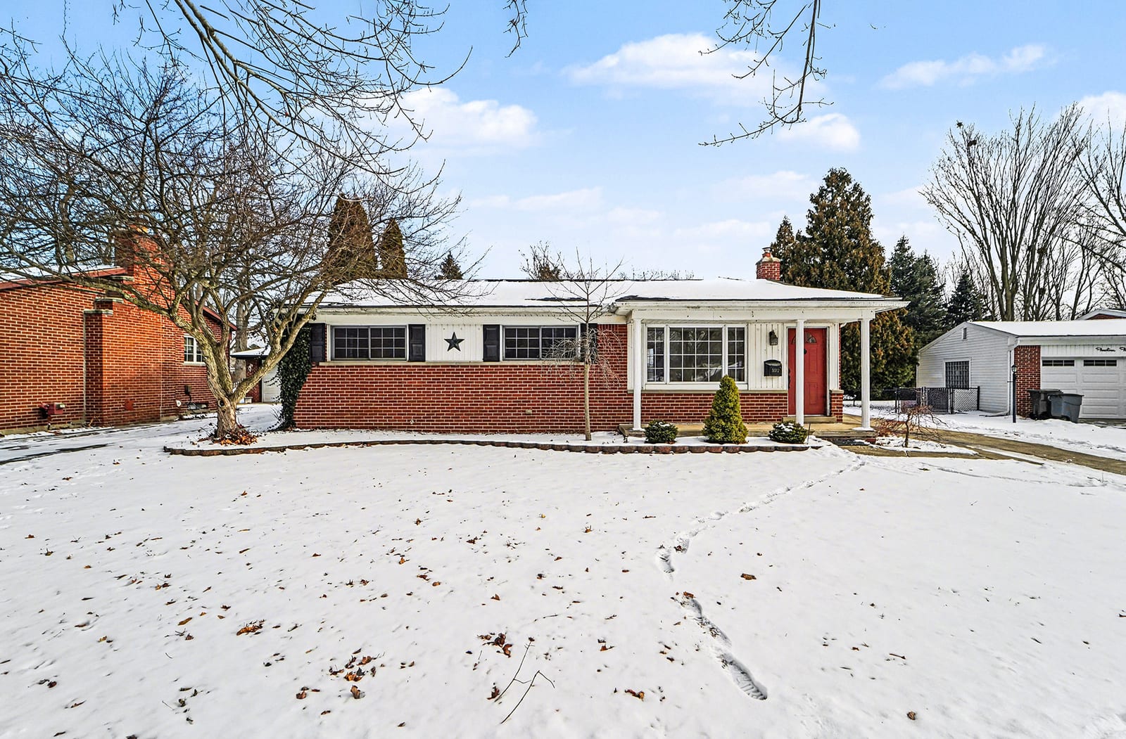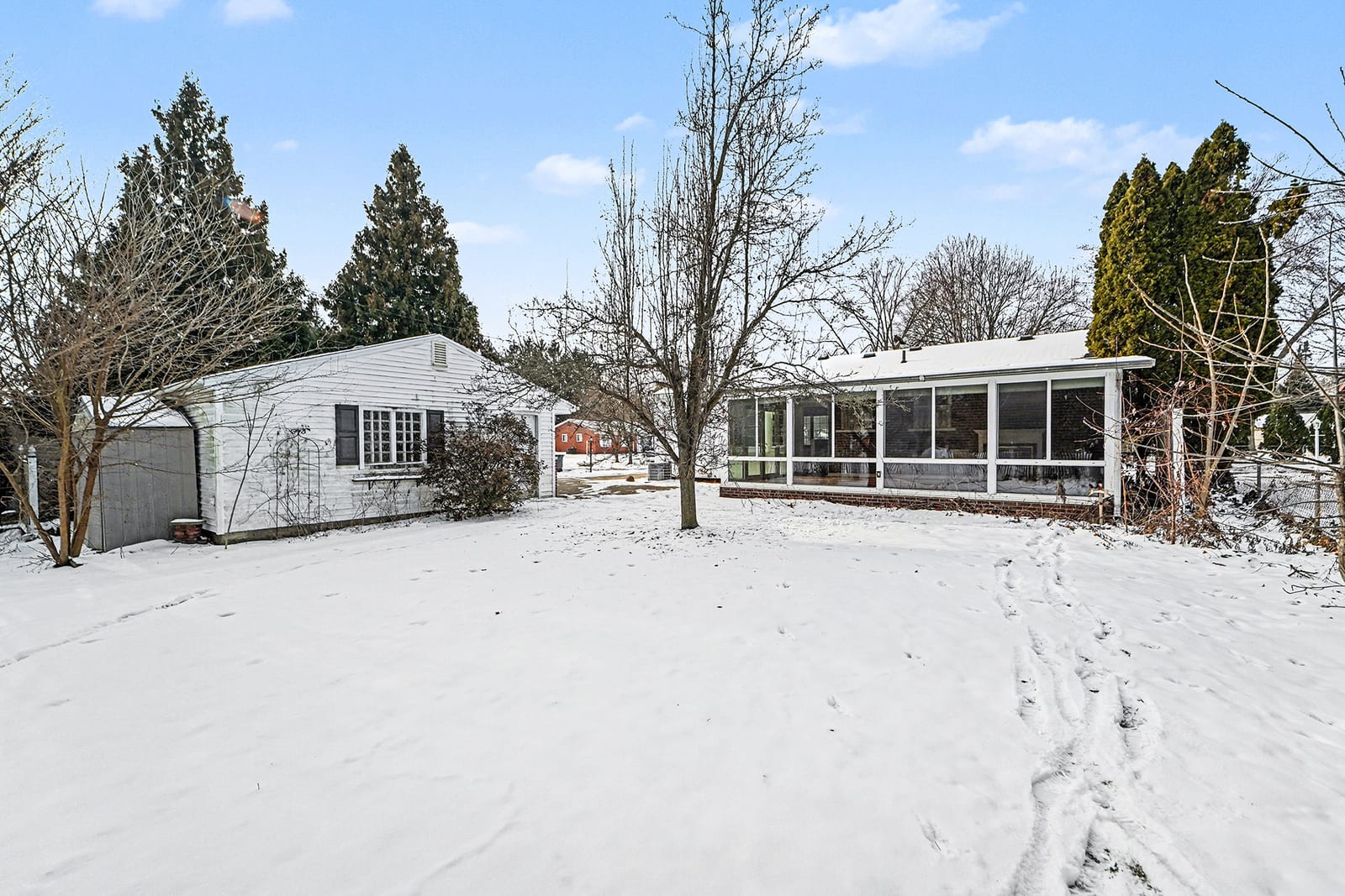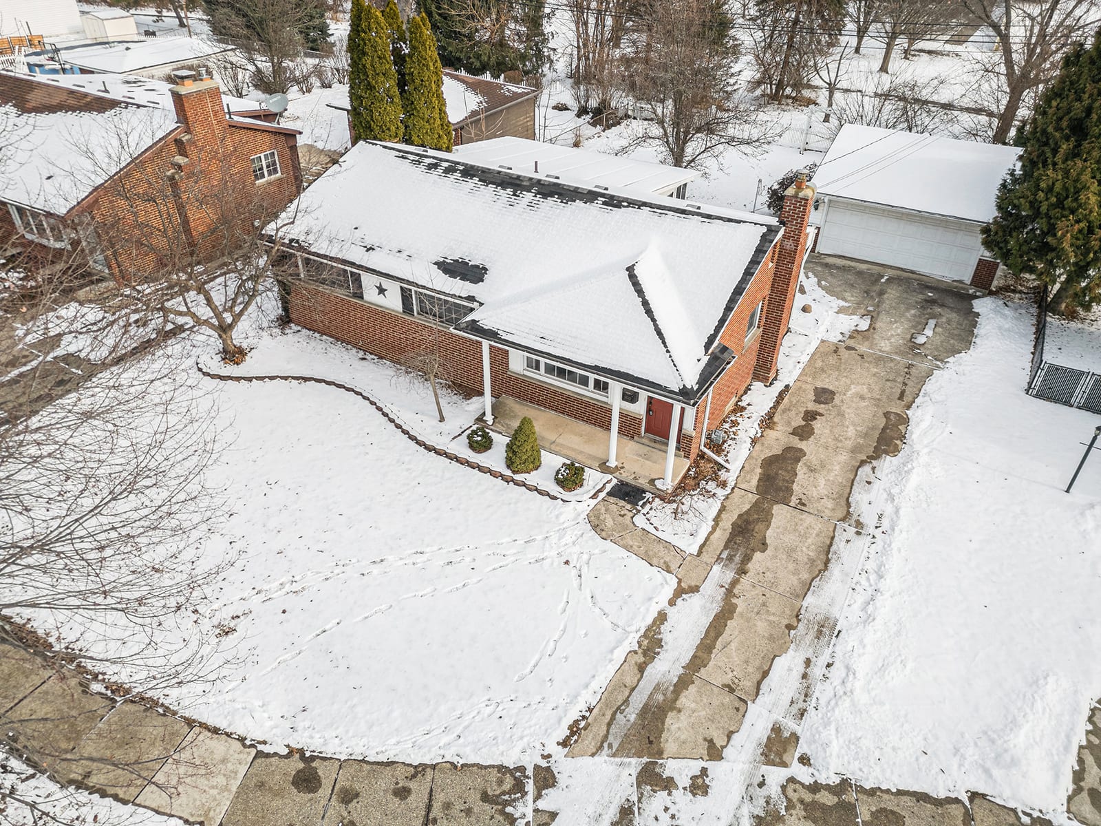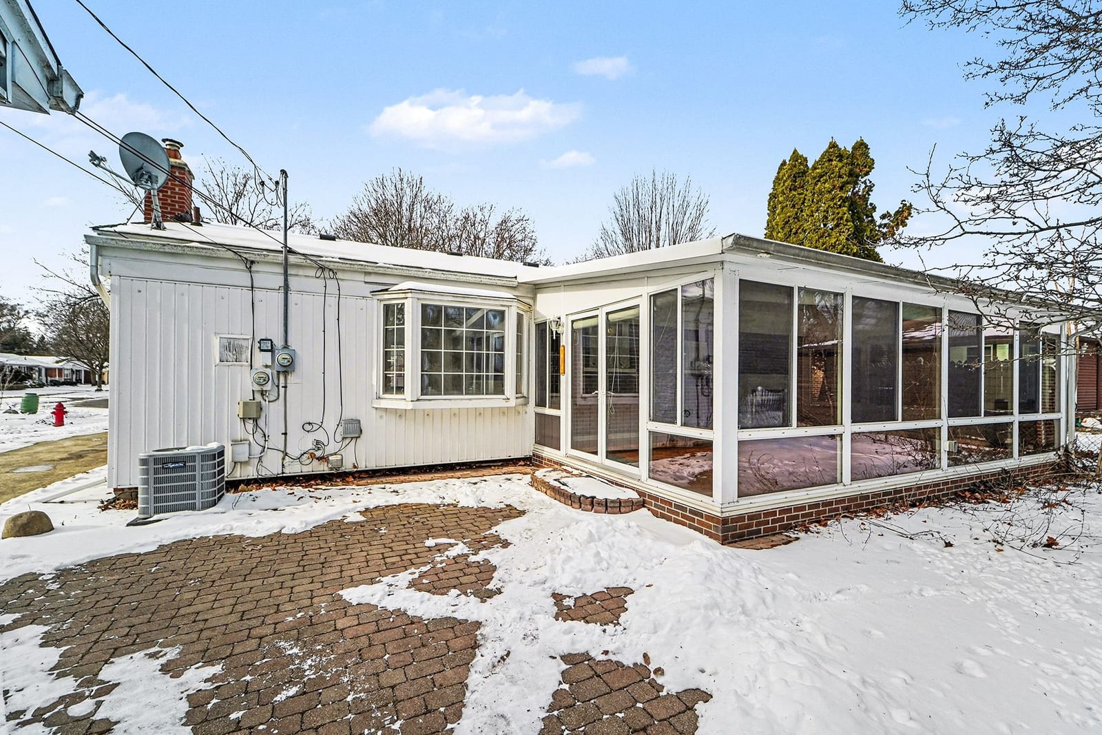 Solid brick ranch in the sought-after Lake Pointe neighborhood of Plymouth! The west-facing orientation fills the home with beautiful natural light throughout the day, highlighting the large living room with crown molding and recessed lighting. The kitchen features a charming breakfast nook with a bow window, perfect for morning coffee. Just off the main living space, the 2007 sunroom addition invites you to enjoy peaceful views of the private backyard and paver patio, with gas heat for year-round use. Three comfortable bedrooms with hardwood flooring and a full bath complete the main level. The partially finished basement offers a rec room, a half bath, a laundry room, and a workshop. Outdoor highlights include a fenced backyard with gate access to the township walking path and soccer park, underground sprinklers, and an updated concrete driveway (2000). The electric panel and service entry were updated in 2007. New garage door opener in 2026. Plymouth-Canton schools with low Plymouth Township taxes. Ideally located near Farrand Elementary, Hines Park trails, shopping, dining, and more. Schedule your showing today!